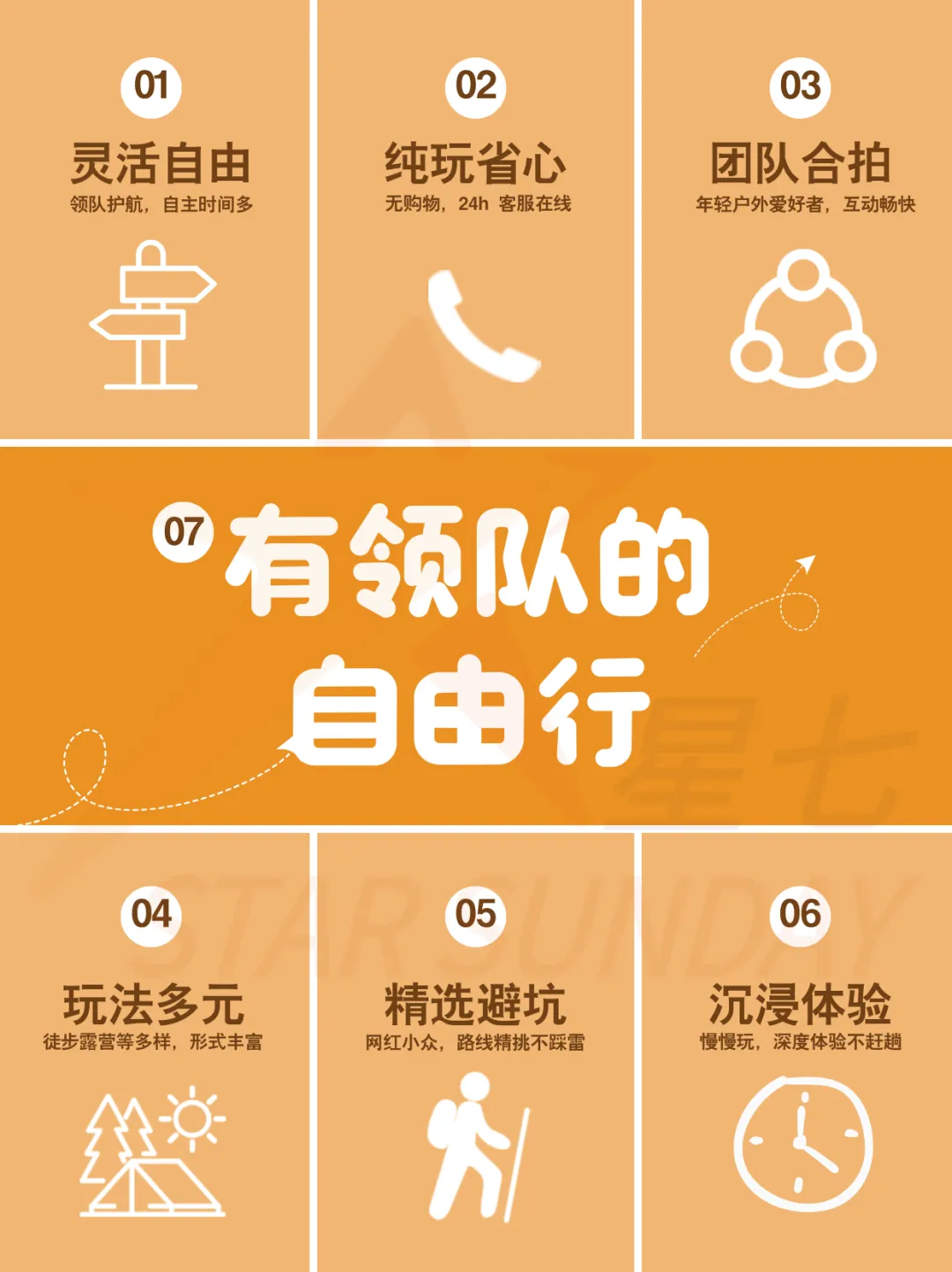 (1)本活动属于户外旅行活动,纯玩,全程不进购物店,没有任何形式购物环节,领队也不作购物推荐,敬请谅解;同时本活动所有费用已明示(包括有可能您自愿自费的项目),无其它任何收费,请您仔细阅读费用包含和费用不含内容。(2)活动出发前会统一给大家发集合信息(微信或短信),包括领队电话、集合时间地点、车牌号等活动信息,队员请以集合信息为准准时集合;车上座位顺序为集合时先到自由选择,全程原车原位;迟到视为自动放弃后续行程,请恕费用不退。(3)活动行程时间仅供参考,受天气、交通、客流量、景区或政府调整等影响有可能会发生变化,请以领队实际安排为准;文中照片仅供参考,不做为本次活动要约;户外活动不同于常规旅行活动,报名时未成年人、60周以上老年人、残疾人、孕妇、患者、港澳台和外籍人士报名需报名时说明,领队有挑选队员的权利。▌ 活动订金及退款(1)1日活动出发前以天12:00前可申请全额退费,之后退出或集合迟到请恕费用不退、不可改期;(2)多日活动距离活动出发日期5天以上退款活动金额90%,距离出发日期5天以下3天以上退款50%,距离出发日期3天以下不予退款!如果无法出行,可以找人代替出行,转票,送人都可以。(3)以上规则仅针对团费,对于团费外组织方已经产生的费用不予退费;特殊、特价、限时优惠、赠送火车票等活动需以帖子内容或咨询客服为准!退费申请成功后,将于3个工作日内返还原付款账户。(4)特别提示,户外活动不同于常规商业旅行团,有可能会因为活动人数不足而取消,会在出发前N天(活动天数)18:00前通知,双方无责,您报名视可您认可此条件。▌ 报名须知凡参加本次户外活动人员必须充分解读以下条款:1、户外活动存在危险与不确定性!参加活动人员必须年满18周岁(未成年人需由法定监护人监护),身体健康,有民事自主能力的公民,并已知晓自己所参与的活动存在不确定性和危险性以及完全理解户外活动(费用自理、责任自负、风险自担)之概念。请参与队员自行认定活动的轻重性,并对出发至返回过程中所有不可预见的意外及风险具备足够的心理及生理承受能力,参加此次活动纯属个人自愿行为,如发生意外与其他同行者及组织方无关。建议参加人员购买相关保险。2、责任声明:本活动为非盈利性质的自助结伴游活动并具有一定的危险性,参加者必须对自己的安全负责,活动中发生意外事故,同行者可根据实际情况组织救援或改变活动计划,但不承担任何法律和经济责任,特此声明。活动开始后,本声明将自动生效并表明你接受本声明,否则,请在活动开始前退出本次活动。3、免责条款:此户外活动属于自助性质的出行活动,当由于意外事故和急性疾病等不可预测因素造成身体损伤时,其他成员尽力救助,但如果造成了不可逆转的永久损伤,其他成员不承担任何(精神和经济)责任。团队中的任何一个队员本着“在力所能及情况下尽力救助、风险自担”的原则参加救助活动。注:本文中所包含的部分文字、图片或视频来源于网络,仅做研究、学习、欣赏之用,如有侵权请联系作者删除,版权归原作者拥有。
