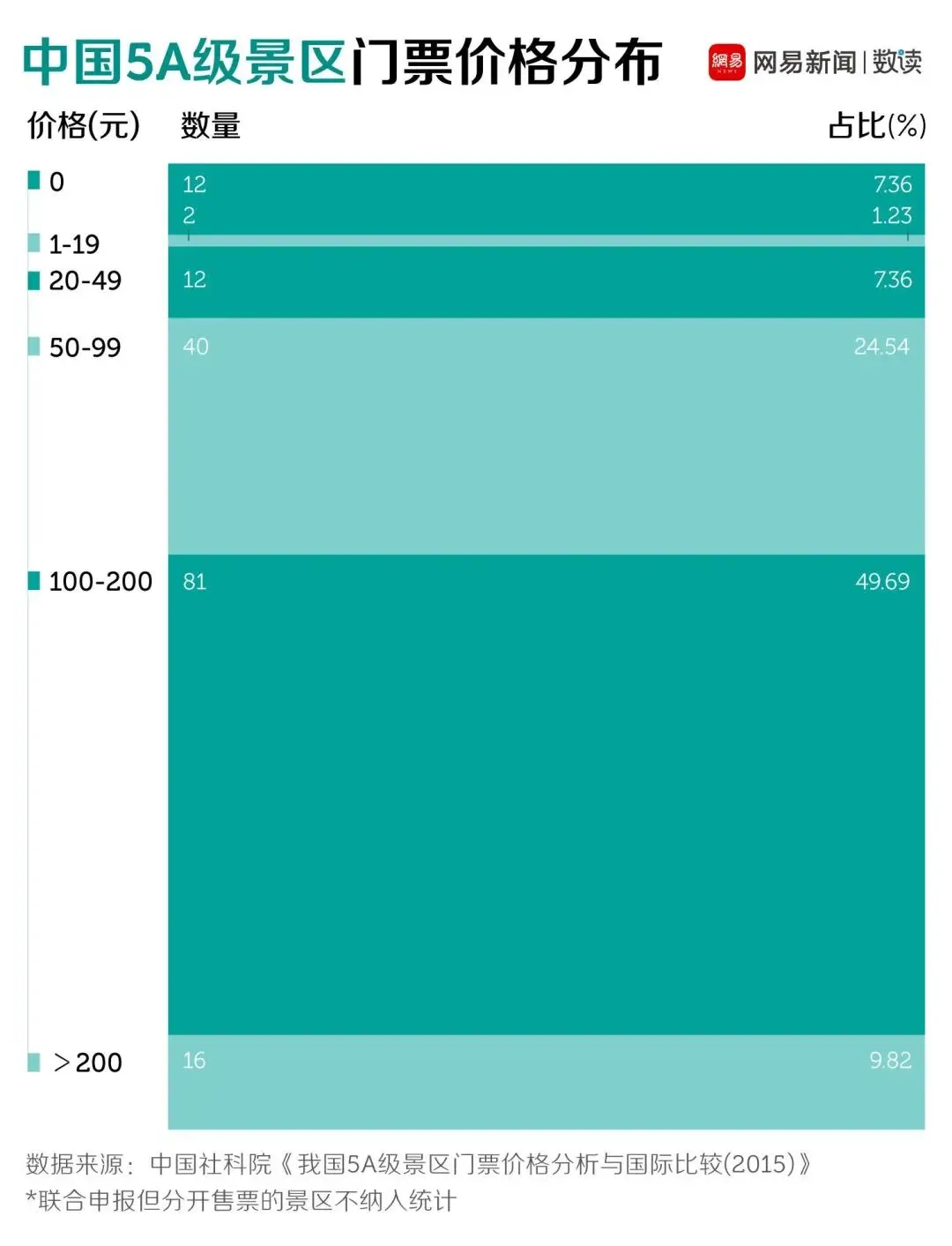 全国目前有三万多个景区,其中A级旅游景区近1万5000个,5A级景区共319家。A级到4A都是地方可以自己定,但5A需要国家定。目前中国5A景区四成景区的门票价格低于100元,约一半的景区门票价格设置在100-200元,还有一部分家景区的门票在200元以上。