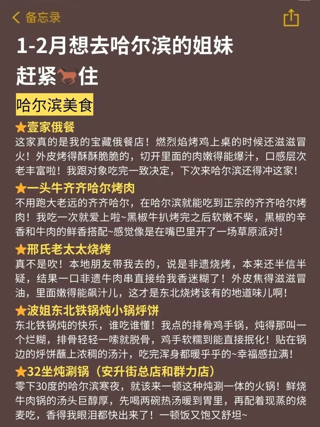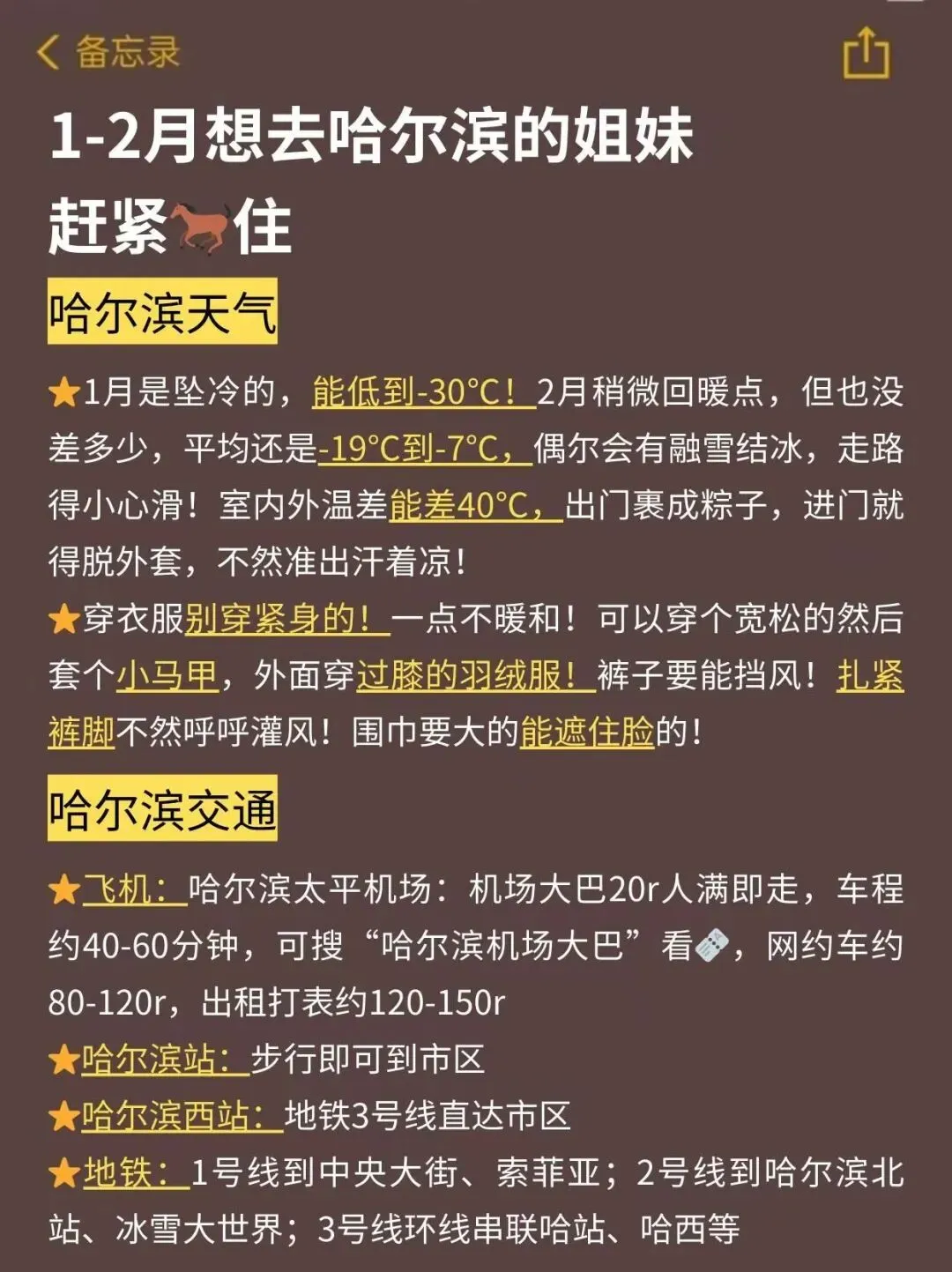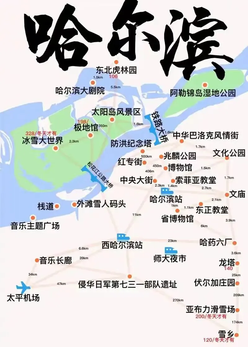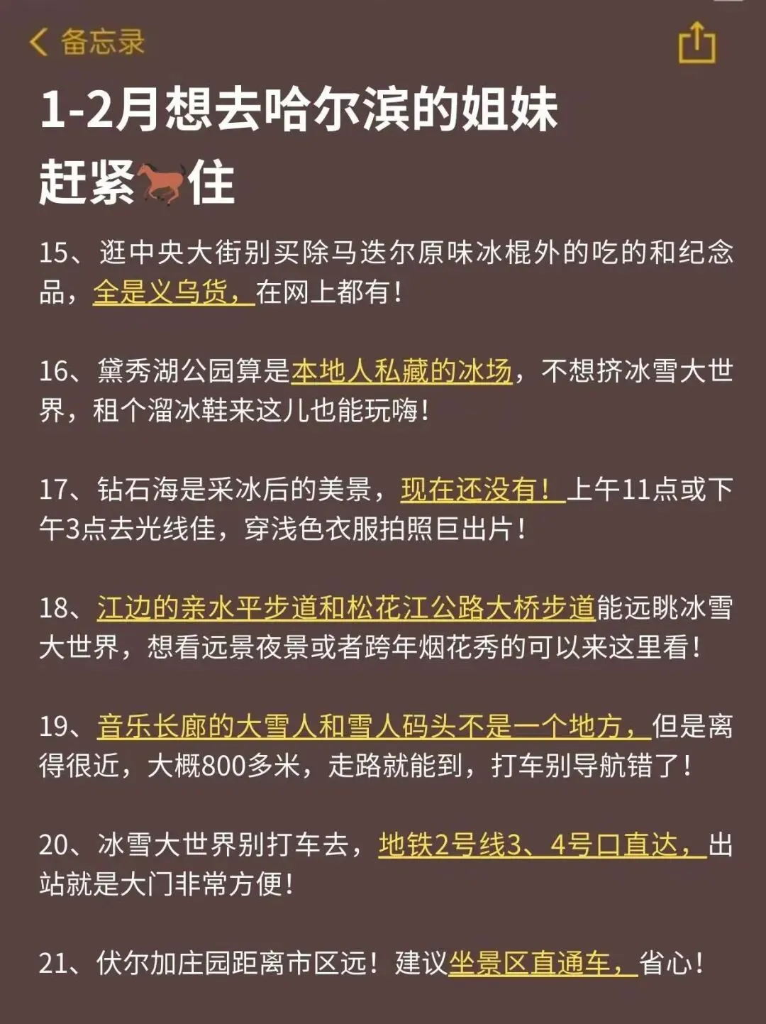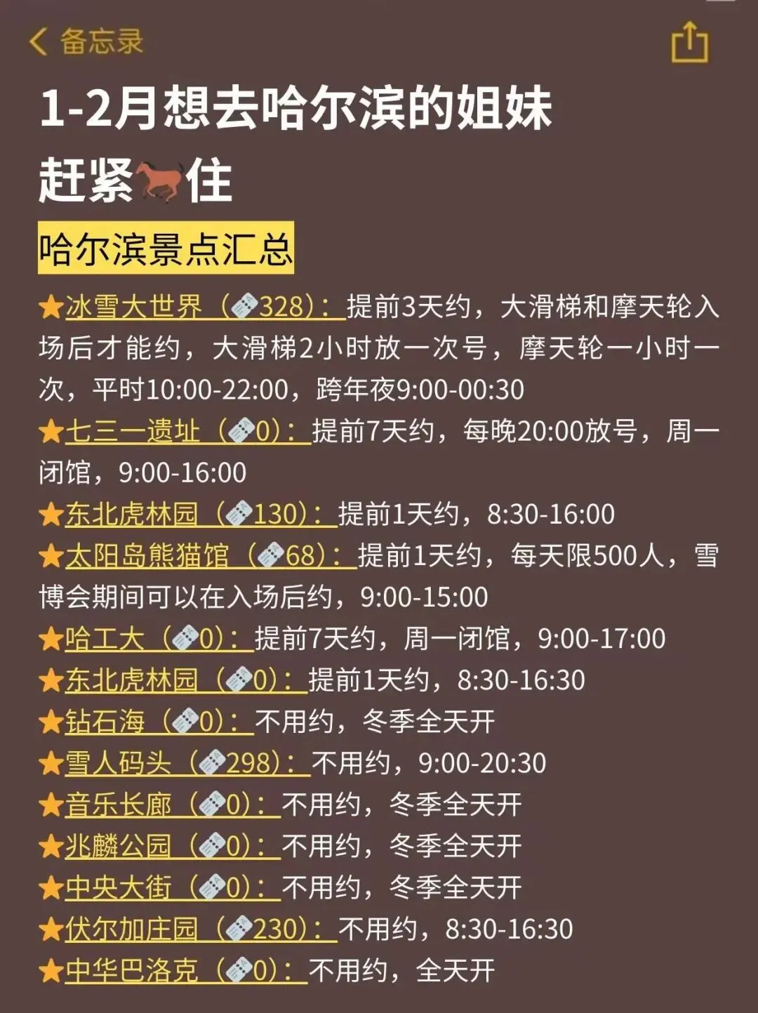 ②✅四天时间:四天三晚两整天时间玩,抽一天时间逛哈尔滨市区内的景点,第二天上午好好休息一下,中午去大世界玩半天,最舒服的时间安排。
