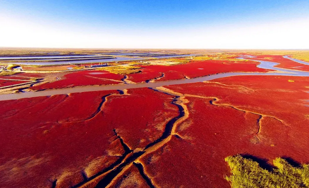辽河口成了北方少见的大湿地,红海滩一片红,苇子一望不到头。