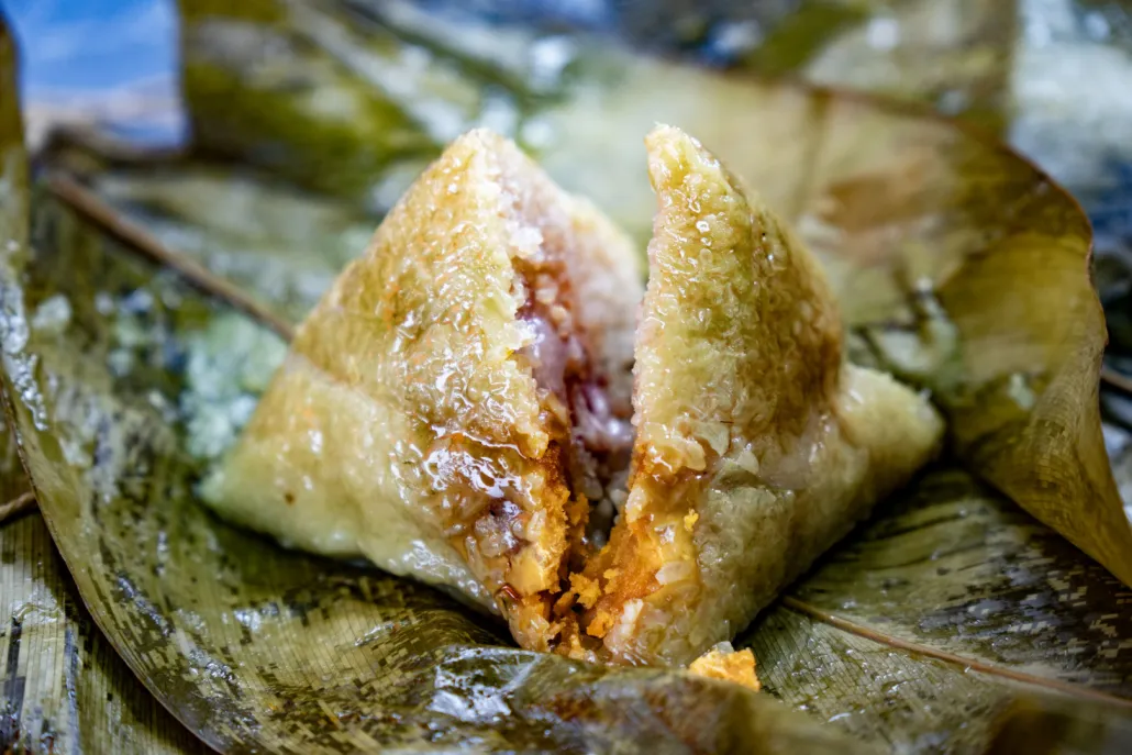 和乐粽:糯米吸饱鲜肉、咸蛋黄与虾米的油脂香气,用料扎实到每一口都裹着馅料,软糯不腻、油润香浓。蒸热后粽叶清香扑鼻,既是解馋硬菜,又藏着“年年粽有好彩头”的年味寓意,全家围坐分享超应景!