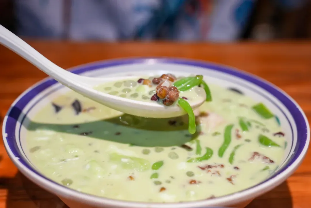 南洋风味清凉暴击!斑斓糕用新鲜斑斓叶汁制作,软糯Q弹带天然植木清香,解暑又解腻。如:斑斓糕、斑斓清补凉、斑斓椰丝粑等。
