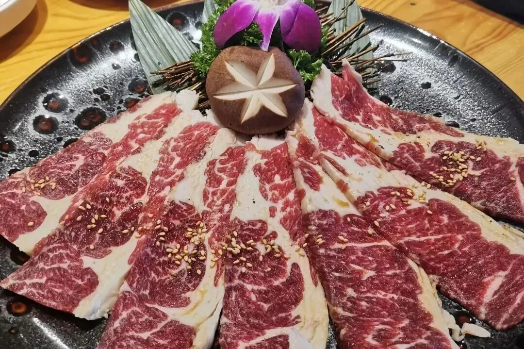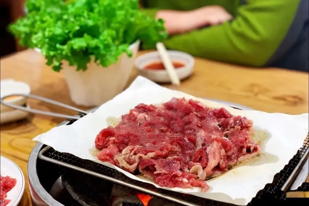 受朝鲜族饮食文化影响深远,肉类多经特制酱料腌制,烤好后配以新鲜生菜、蒜片、青椒与特色酱料包裹食用,风味醇厚,独具特色,体现梅河生活的多元融合。