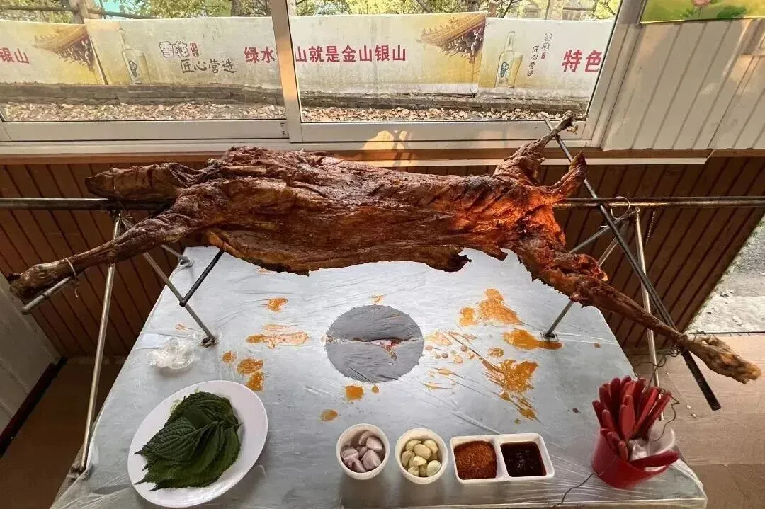 沿用传统蒙古族烤制技艺,整羊慢火旋转烤就,外皮金黄酥脆,内里鲜嫩多汁,香气浓郁四溢。这道宴席上的重量佳肴,诠释着梅河人生活中的热情慷慨与共享之美。
