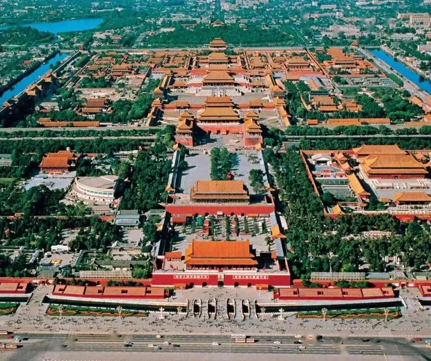 城里再看中轴线。永定门到钟鼓楼,城楼牌坊一条直线,骨架清清楚楚。