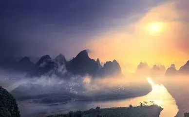 第二天清晨相公山看日出,回身下到兴坪古镇,午后走杨堤—兴坪一段水面,傍晚回阳朔吃清口菜。
