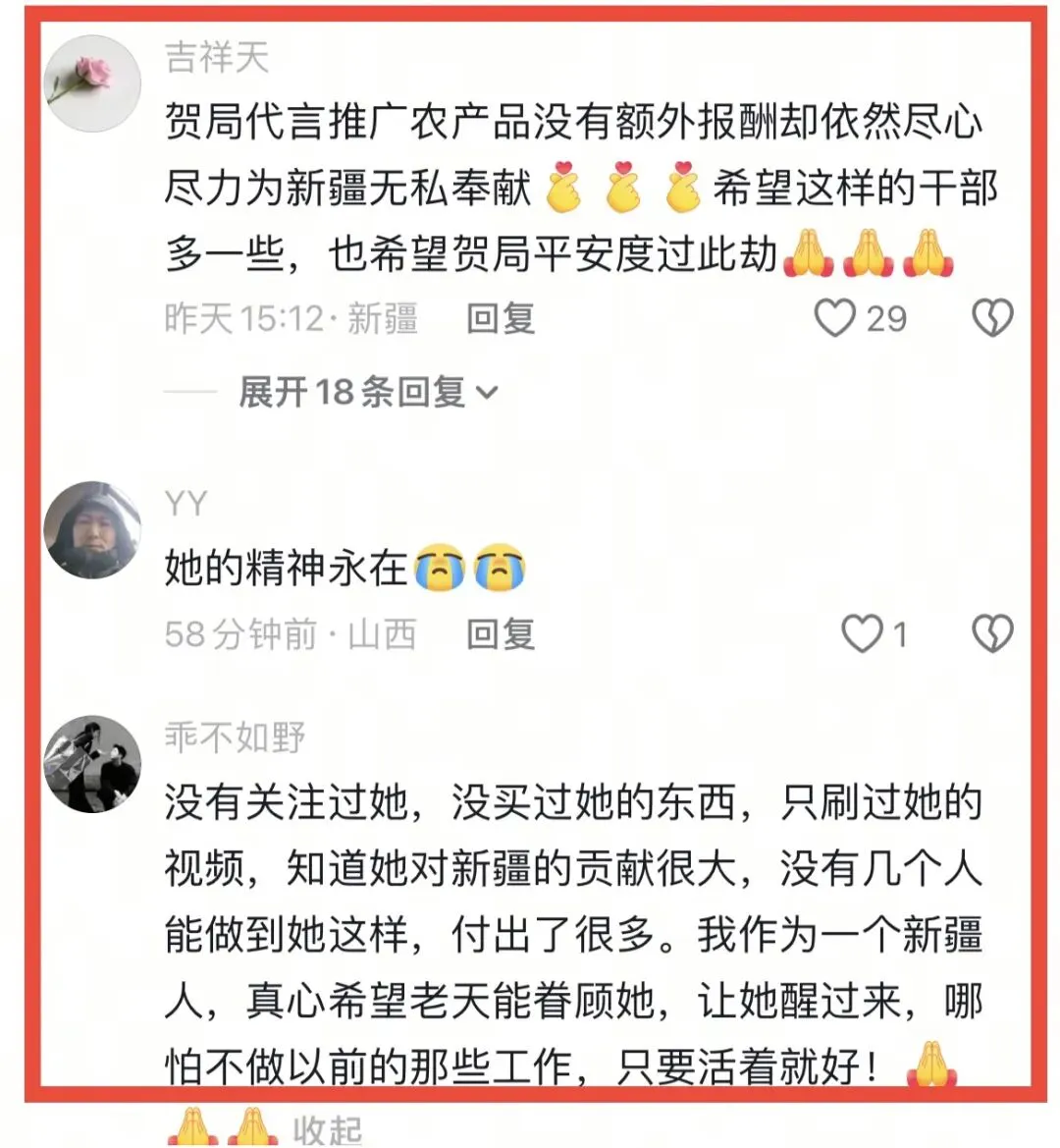 4、贺局代言推广农产品没有额外报酬却依然尽心尽力为新疆无私奉献,希望这样的干部多一些,也希望贺局平安度过此劫。