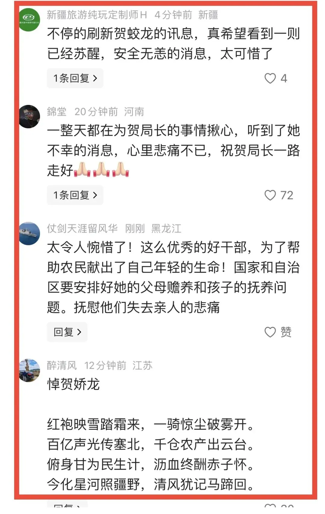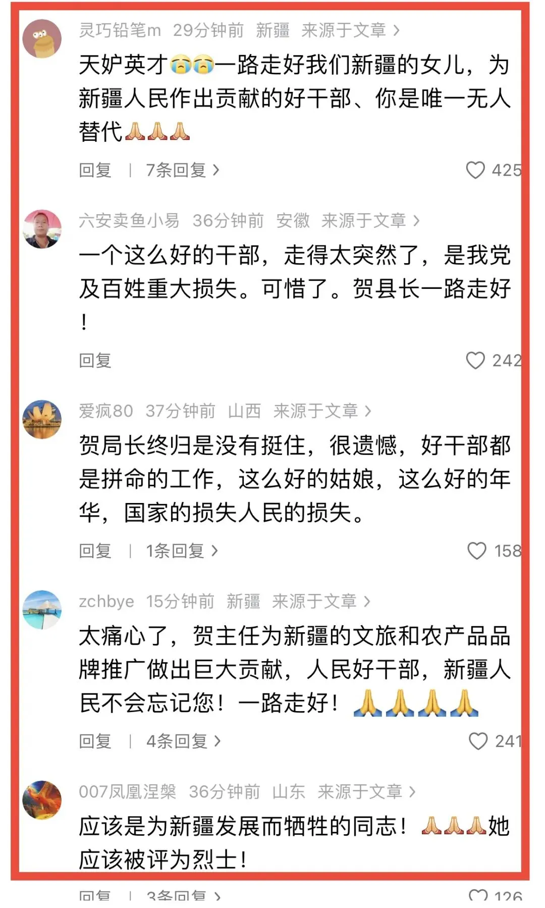 2、她是我们新疆的骄傲,她的离开让我们万分悲愤,一路走好我们新疆永远的贺局长。