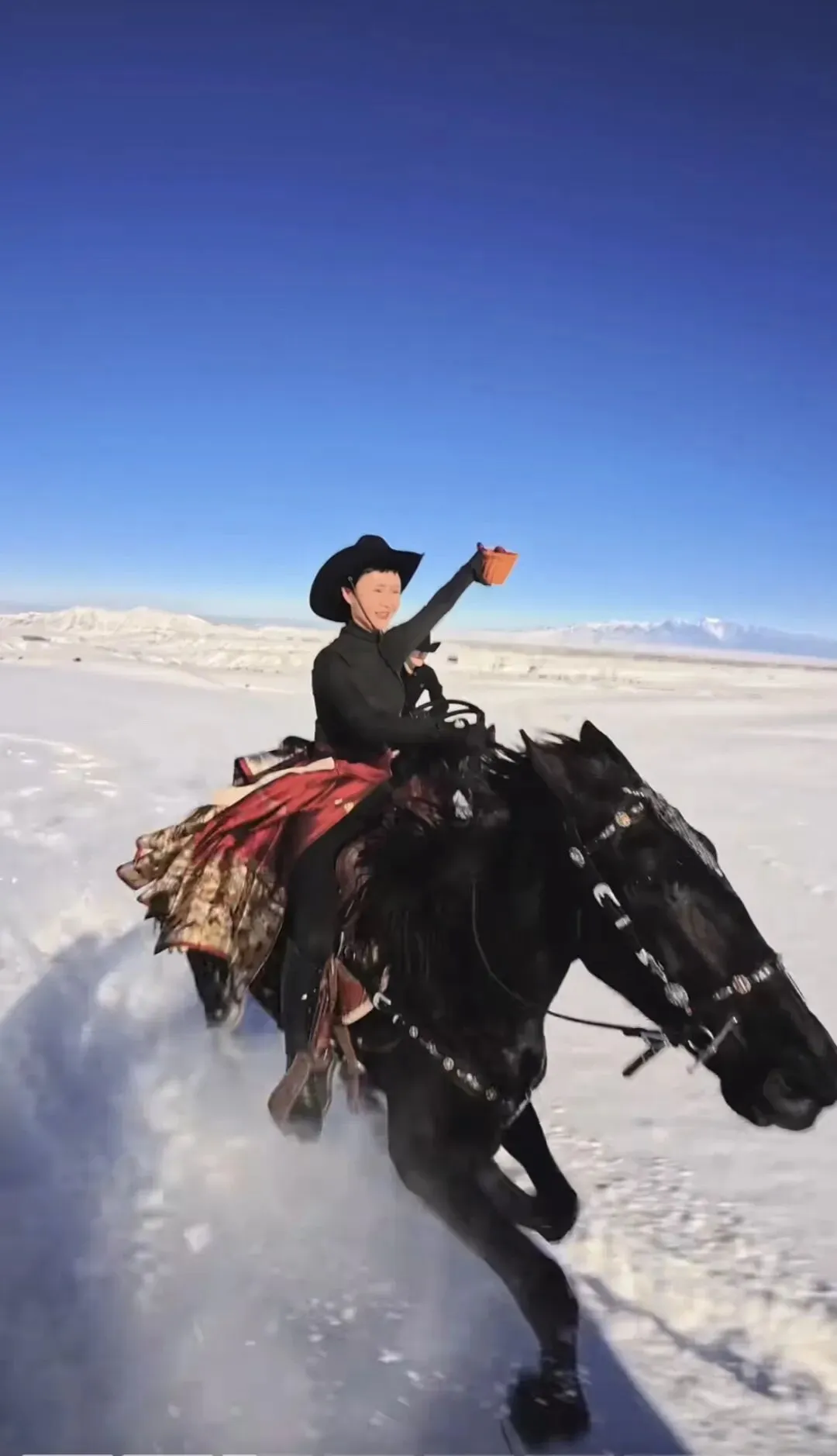 “以热爱为鞍,赴山河之约“,一骑红尘点亮边疆文旅之光,还记得2020年那个鲜衣怒马,驰聘雪原,身披红斗篷,策马扬鞭,镜头里那个英姿飒爽的女子吗,她就是贺娇龙。
