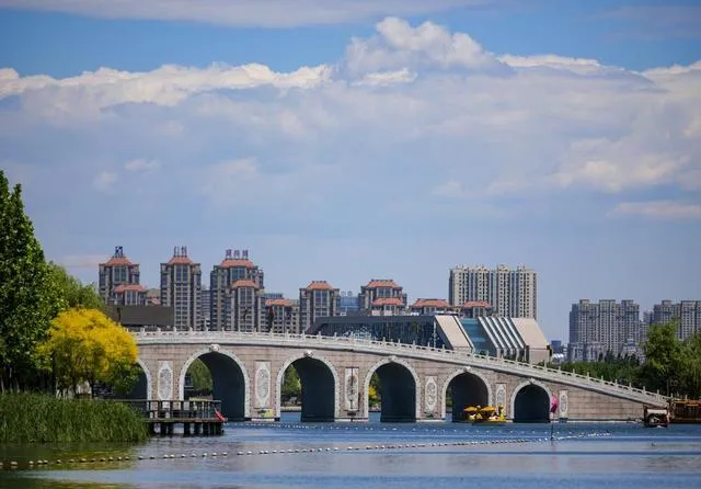 唐山南湖,不像咱郑州的紫荆山公园那种一圈就是一圈,哪怕你闭着眼也能摸着出来。南湖像块摊开的玉,湖面宽得能装下半座城市,步道平坦得推娃娃车都能溜冰。草地一片接一片,像铺开的被单,随便找个树荫就能坐下。那天上午,太阳还不毒,湖边的杨柳刚冒芽,风一吹,柳絮就像细细的棉絮,黏在娃的睫毛上。我家那口子看见,有点心疼地说:“中不中,咱歇会儿,甭赶了。”河南方言到了唐山,带着点水汽,听着也软和了。