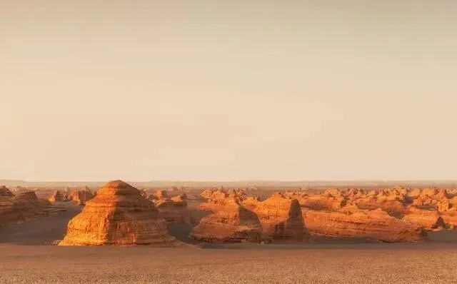 拍照建议清晨或傍晚去 , 光线斜着打过来 , 雅丹像一艘艘沉默的军舰。