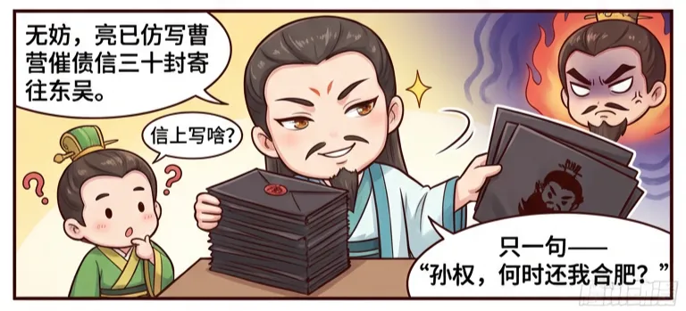 当粗暴和炫耀都失效后,诸葛亮亮出了真正的王牌。他掏出一叠信:“无妨,亮已仿写曹营催债信三十封寄往东吴。”刘备好奇:“信上写啥?”诸葛亮微笑:“只一句——‘孙权,何时还我合肥?’”