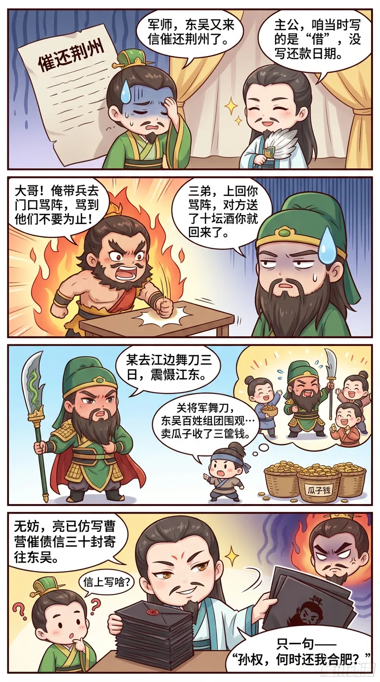 漫画开篇,刘备扶额发愁:“军师,东吴又来信催还荆州了。”这像极了被多个合作方连环催进度的项目主管,焦头烂额。