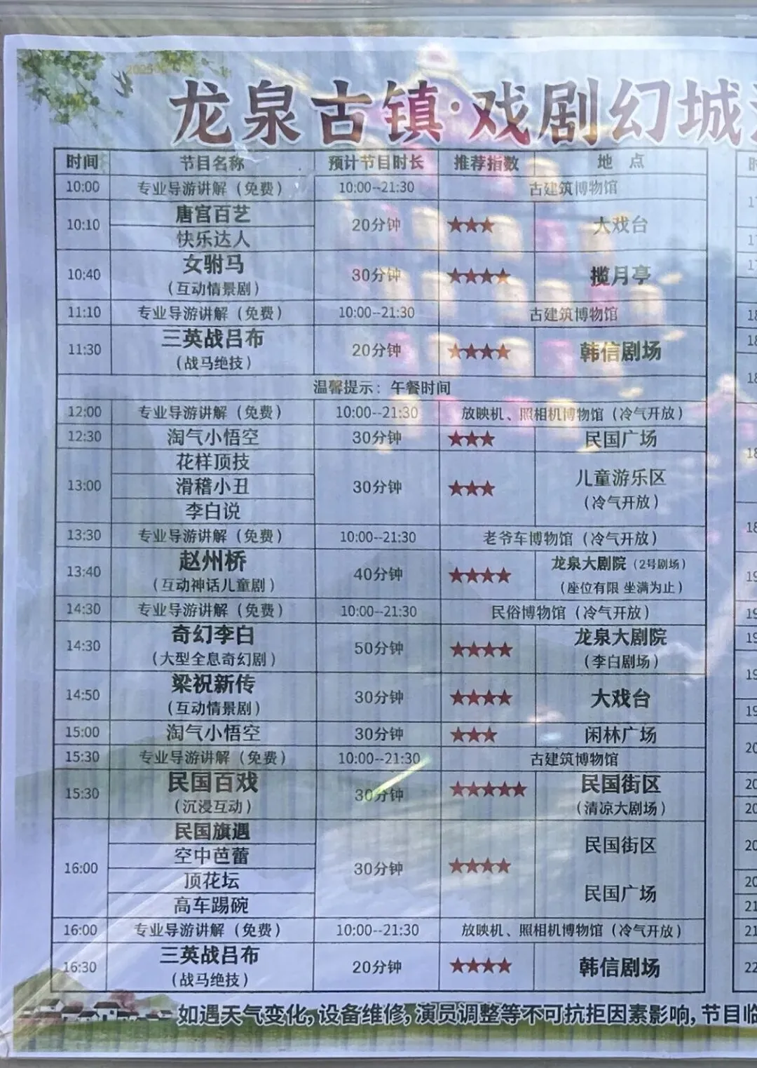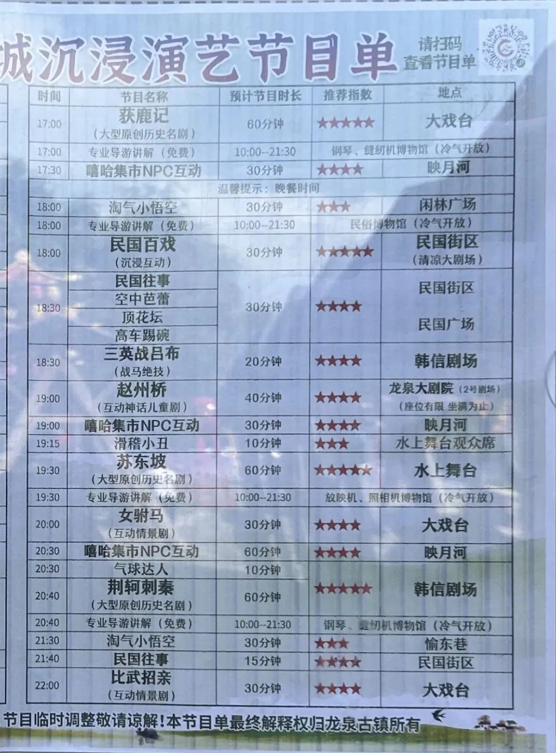 演出时间表👇