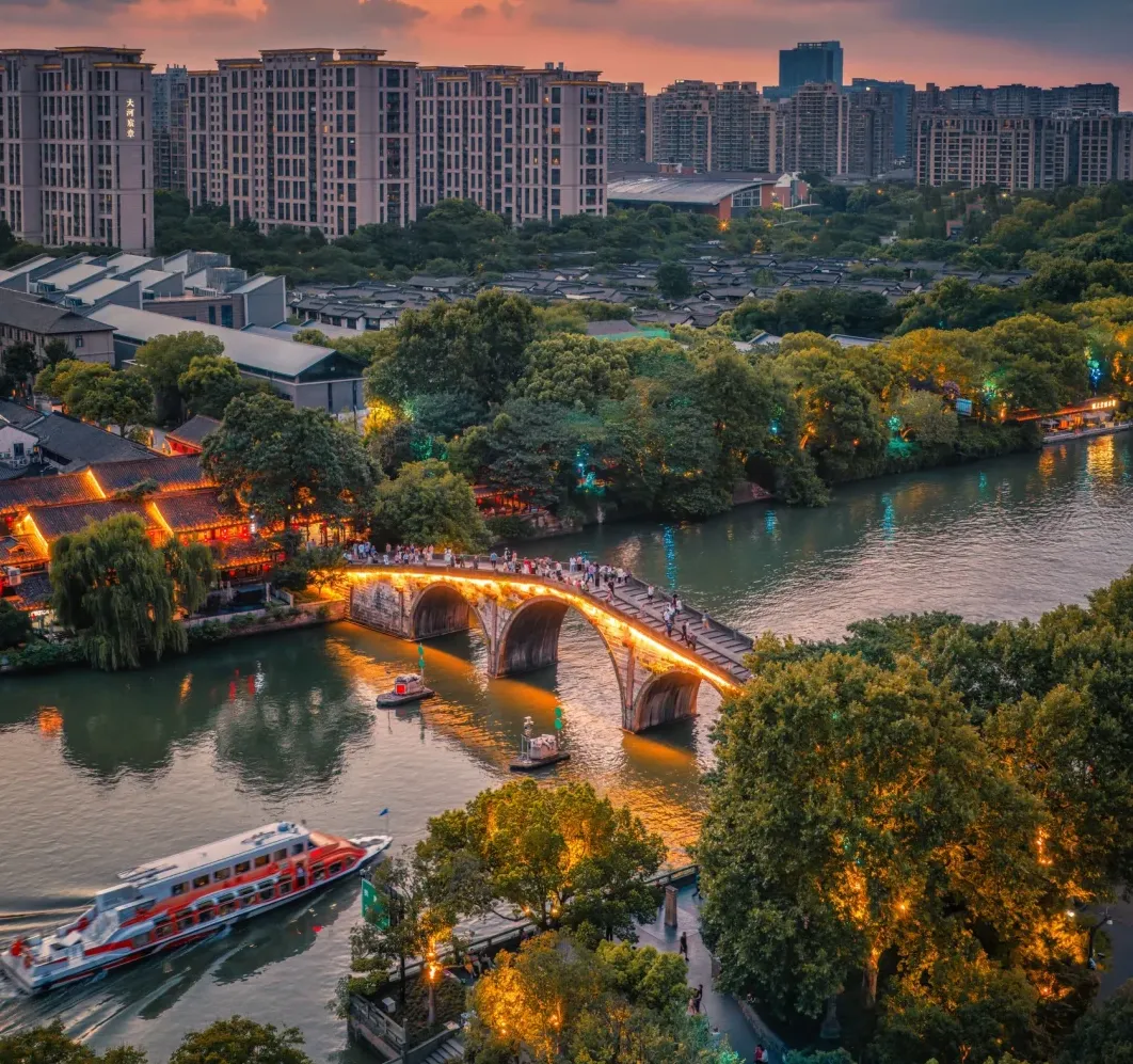 下午到运河拱宸桥边,桥影落水,风一吹就成画。