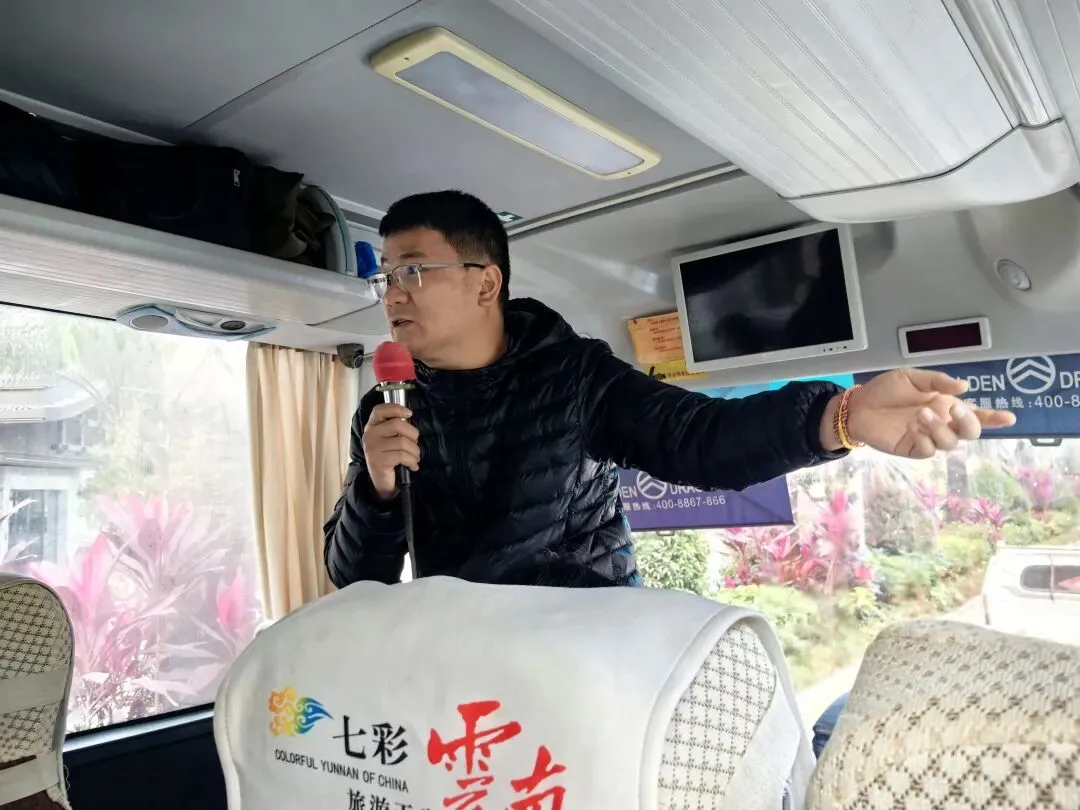 导游在车上坦诚说明:购物是本次旅游的一部分,也是旅行社整体运营的组成部分,游客可自由选择是否购买,绝无强制。事实也的确如此,全程未曾出现强行推销或言语施压的情况。他进一步解释,游客所住宾馆条件优越,人均每晚仅100元,若自行前来,不仅难以预订同类房型,价格也远高于此。原因在于旅行社提前整包酒店资源,将原价120至150元的房间压至百元以内,切实为游客节省了开支。另一位导游坦言,他们没有固定工资与社保,收入全靠带团提成,望大家理解。照片中的男导游言辞直率又风趣,深得游客喜爱。此次银店销售,他获得约1200元提成,公开告知后,众人释然,反觉坦荡可信。中午用餐时,他还自掏200元为全车游客每桌加赠一盆云南米线,气氛顿时融洽欢愉。