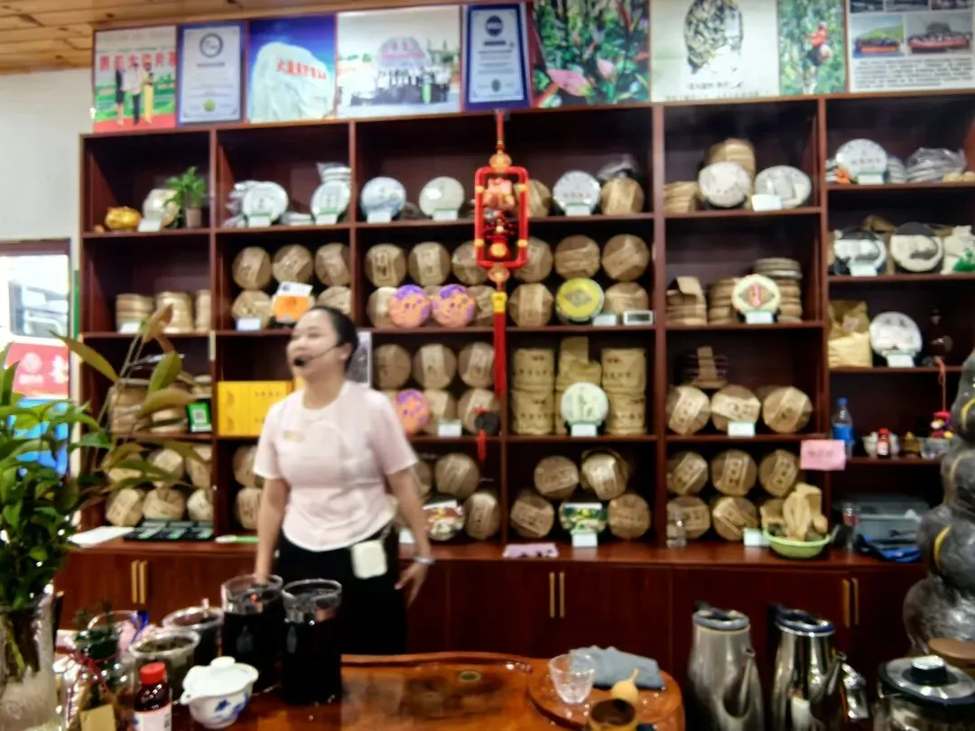 我们这个团队的好多游客是喜欢喝茶的,听了介绍 品尝了好几种普洱茶,他们也是纷纷解囊购买,有的游客竟一次购买十几饼。