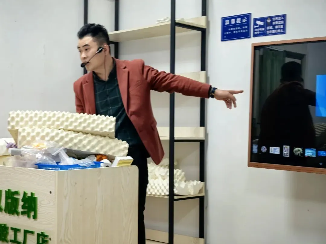 我们来到乳胶店,令人意外的是,乳胶店的老板竟亲自上阵,取代原接待人员担任讲解。他谈吐专业,情感真挚,将产品特性与生活需求巧妙结合,原本无意购买的几位游客,竟在讲解结束后欣然下单,成交结果出人意料。