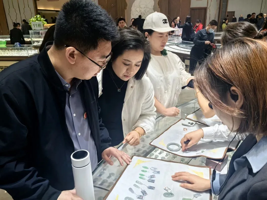 相较于翡翠,黄龙玉价格亲民,性价比突出,因此吸引了大量游客选购,成交氛围热烈。