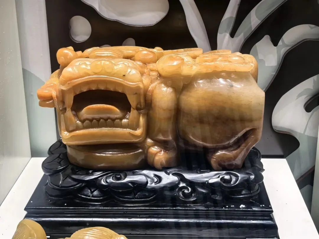 店内一件由黄龙玉雕琢而成的貔貅尤为引人注目,造型生动,寓意招财纳福,不少游客争相请购,寄托美好愿望。