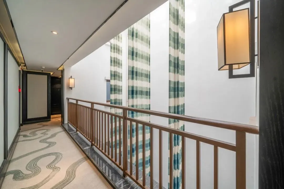 酒店采用新中式的装修风格,大堂及客房背景墙用水墨画做点缀,使江南水乡的特色在每一间客房都得以体现。