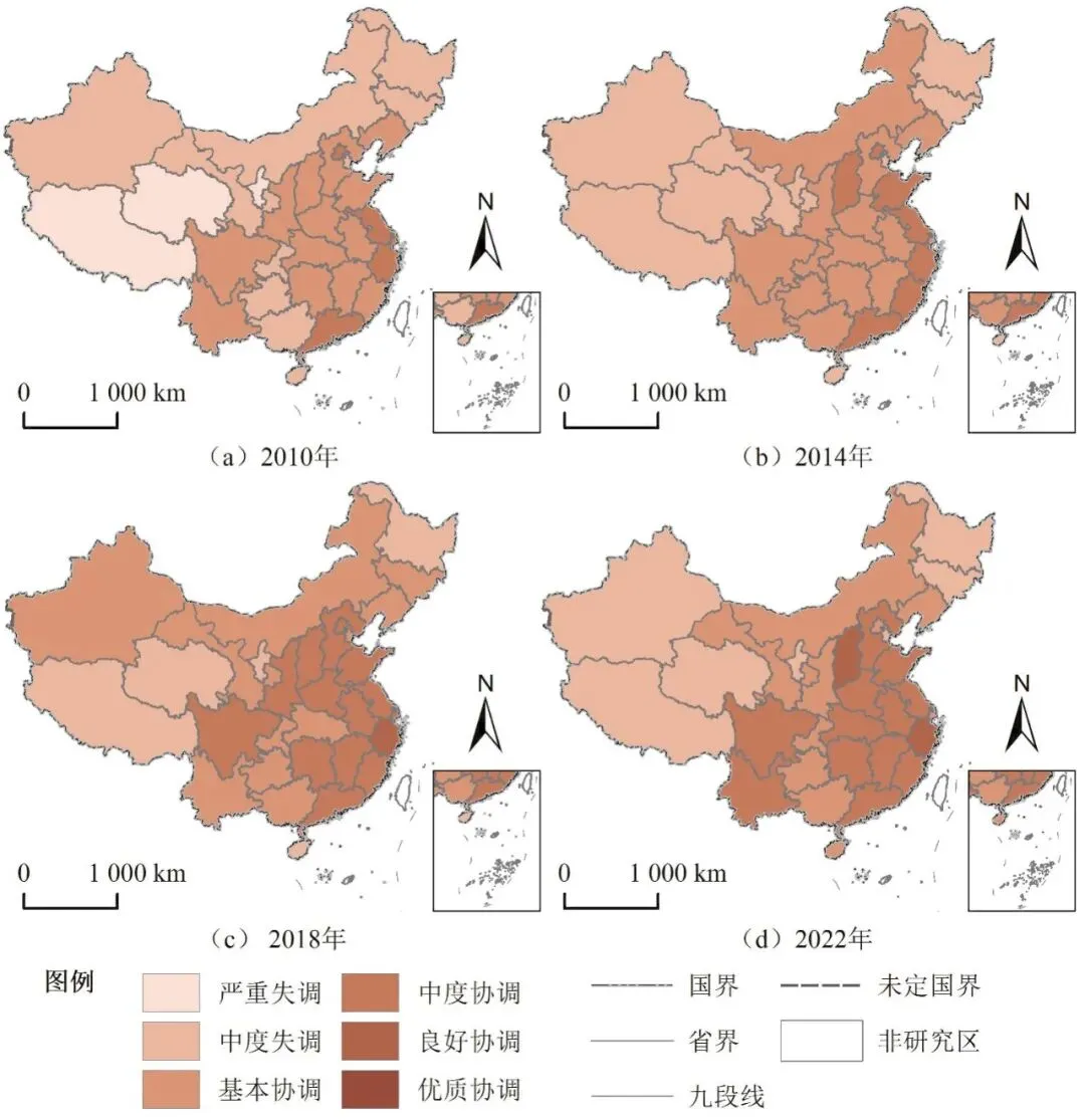 图 1 旅游发展与城乡融合耦合协调的时空演变