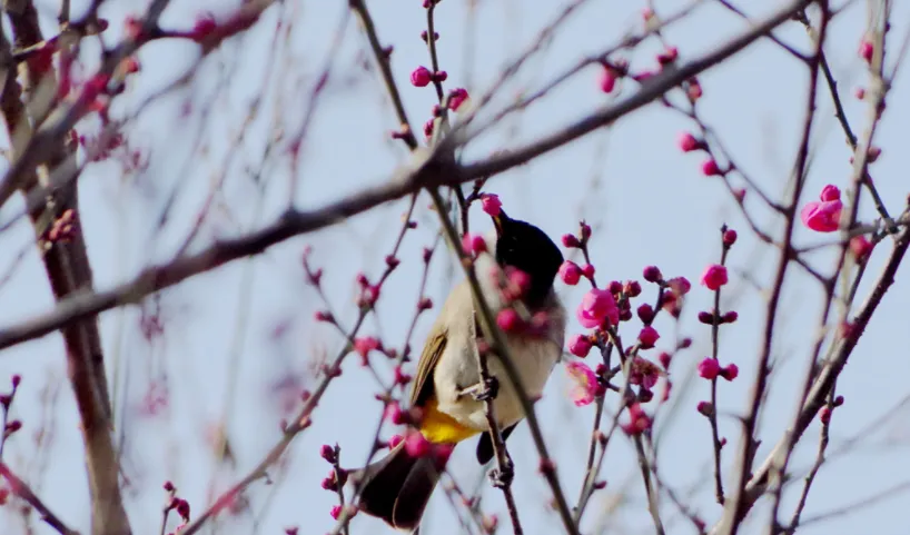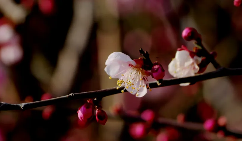 当走进植物园,立马就能闻着梅花的香气。漫步在植物里,只见红梅灼灼似火,白梅冰洁如玉,在清冽寒风中勾勒出冬日独有的诗意。