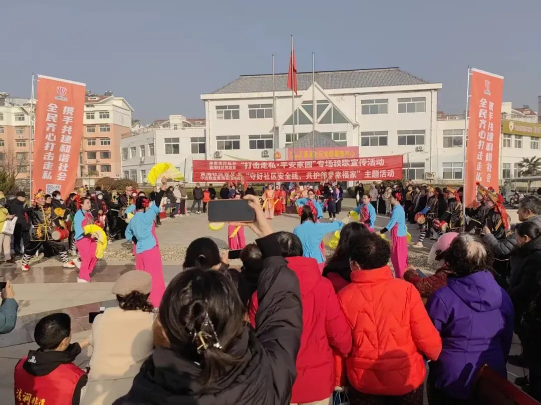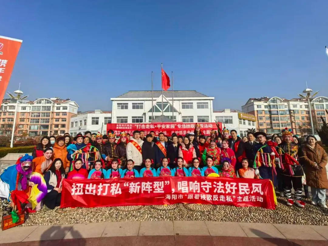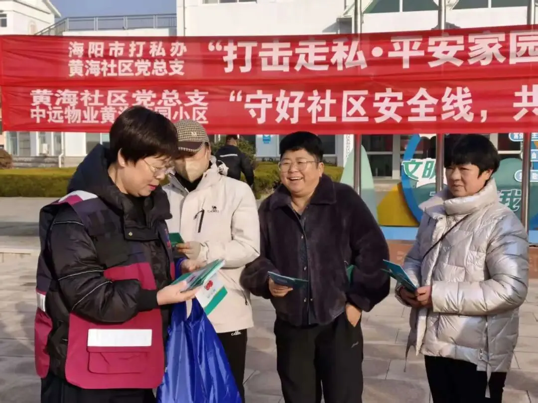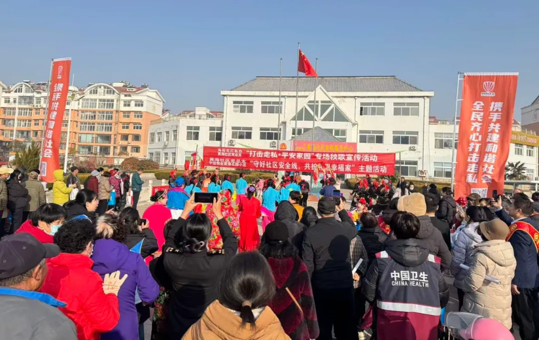 为进一步增强辖区居民反走私意识,营造全民参与、共筑防线的良好氛围,黄海社区联合海阳市打私办,在中远物业黄海花园小区开展“打击走私·平安家园”主题活动,本次活动以传统秧歌表演为载体,融合便民服务、政策宣讲,将反走私知识送到居民身边。