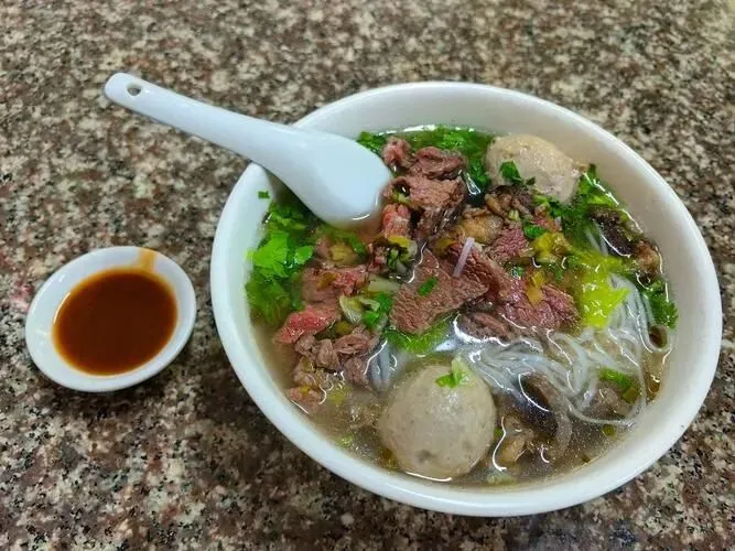 牛肉粿条是硬菜,汤底拿牛骨熬6个钟头,清得能见底,鲜得眉毛跳。粿条现切,宽的那种,筷子夹起来抖两下,吸溜一口进嘴,滑得拦不住。牛肉片薄成纸,烫8秒就捞,还带点粉色,嫩得没边。一碗15块钱,肉铺满碗面,老板再给你撒把芹菜末,胡椒粉自己加,吃到冒汗,鼻尖挂着水珠,肚子撑得站不直。