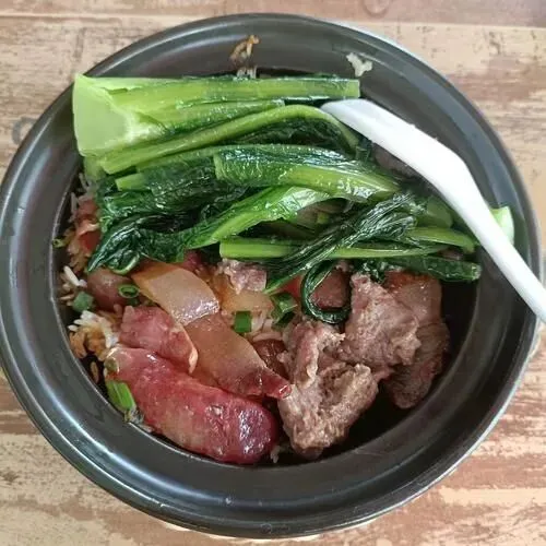 广州煲仔饭,用的是丝苗米,瓦煲直接上炉子。腊味切片铺米上头,盖盖子焖。火候到了,锅巴焦脆,米粒吸饱了油脂。