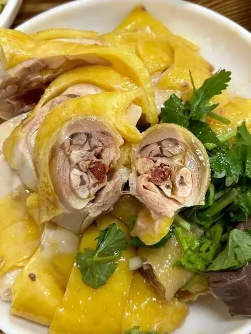 鸡皮滑溜溜,鸡肉紧致,蘸姜葱酱,咬下去汁水往外冒。半只鸡40块,够俩人吃。骨头啃得干干净净,手指头上全是油,纸巾擦半天擦不干净。