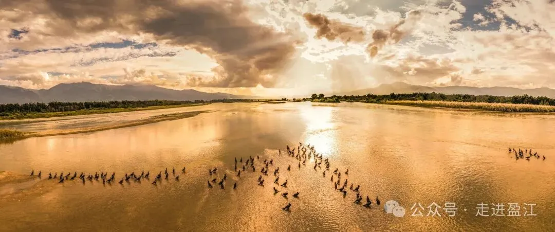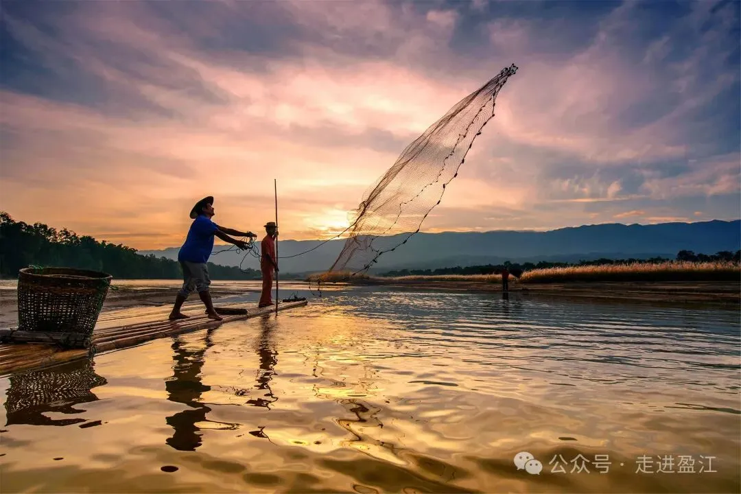 当夕阳将大盈江染成碎金,渔人挥臂撒出希望的网。这不正是王勃笔下那幅绝美的画卷吗?江水长流,波光粼粼,水鸟贴着水面低飞,光影交错中,演绎着最质朴的生活美学。