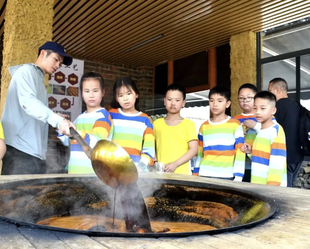 图为古法红糖熬制体验现场