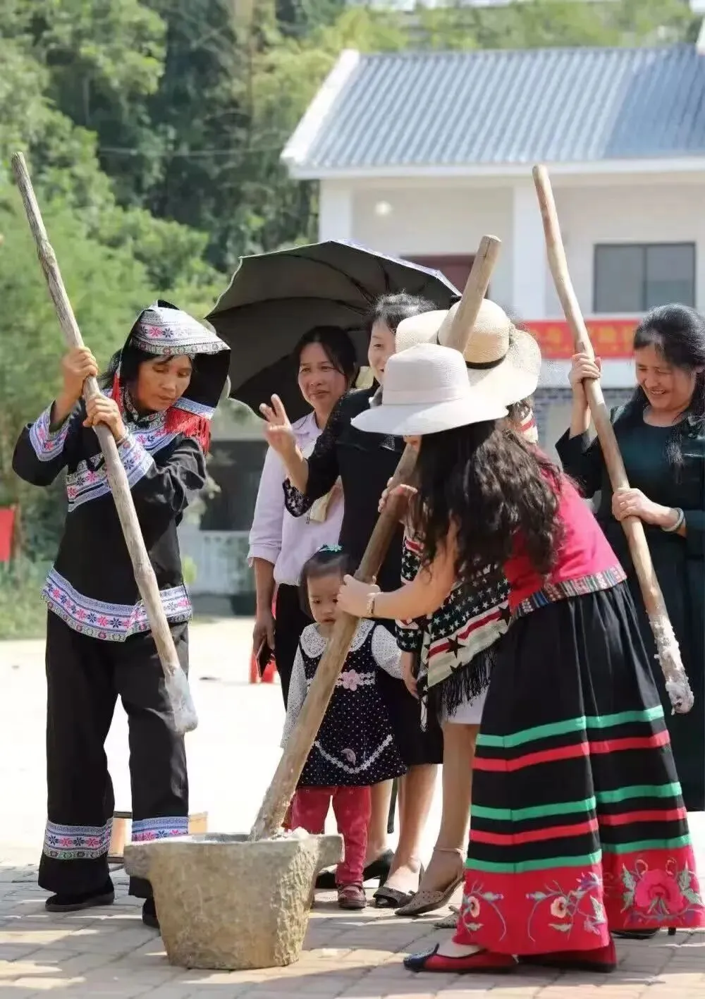 糍粑是壮族的特色传统美食之一,以柃木灰水和糯米为主要原材料,体验淘洗、浸透、蒸熟、舂打、揉捻、成型等多道制作糍粑的工序,学习舂糍粑的传统技艺,感受壮族民俗的喜庆与魅力。