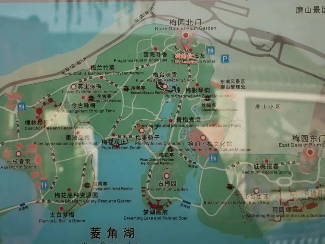 东湖梅园,说大不大——与南京梅花山这等“巨无霸”相比,它显得更为精致;说小不小——比起无锡梅园、上海淀山湖梅园,它又自有其开阔气度。这份“恰到好处”,让它既能满足你赏梅的期待,又不会因园区过大而让人迷失方向(当然,如果不看地图,依然很容易在花海中找不着北!)。