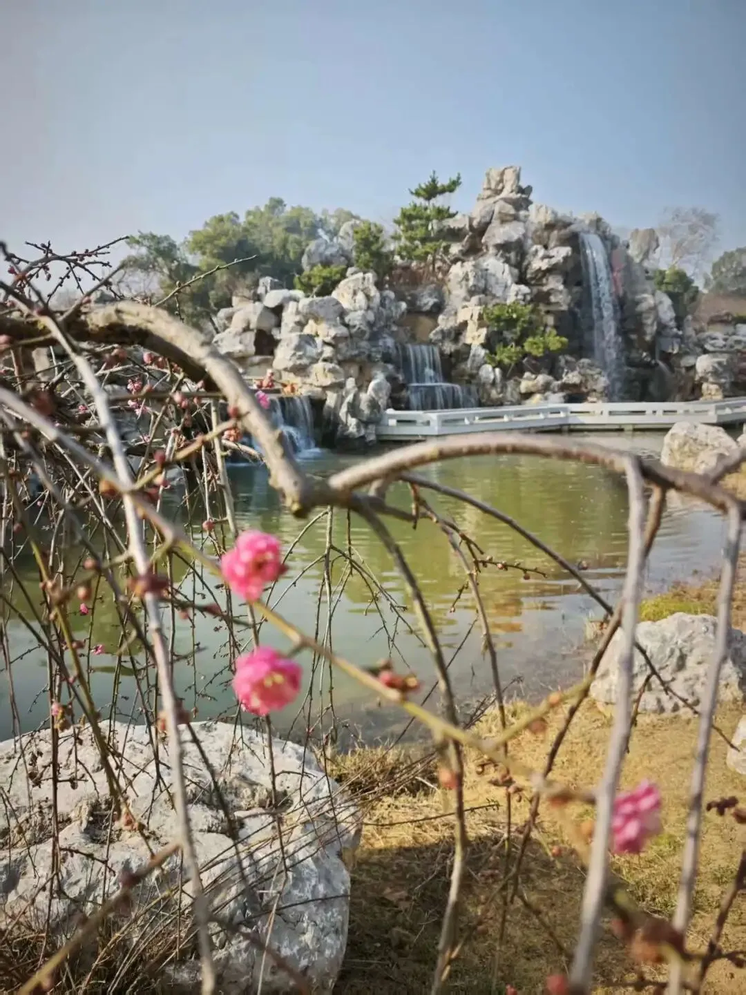 这里是观赏梅花姿态的绝佳位置。站在梅台之上,赏梅听泉,尽享文人雅士的浪漫。特别推荐穿上汉服,在梅花、假山与瀑布的映衬下,随手一拍就是一张绝美的古风大片。