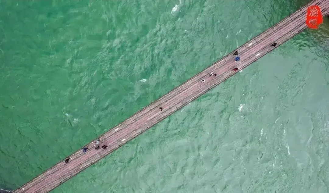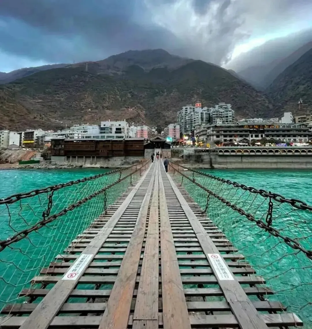 桥上很晃,桥下水流非常湍急,注意走中间木板,慢慢走注意安全,上桥不要戴帽子和撑伞~