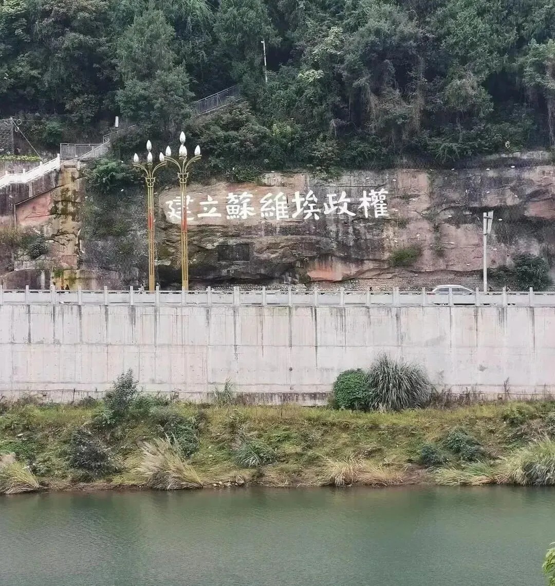 通江,曾经川陕根据地的首府,至今还留有当年刻在山体上的霸气宣传标语~