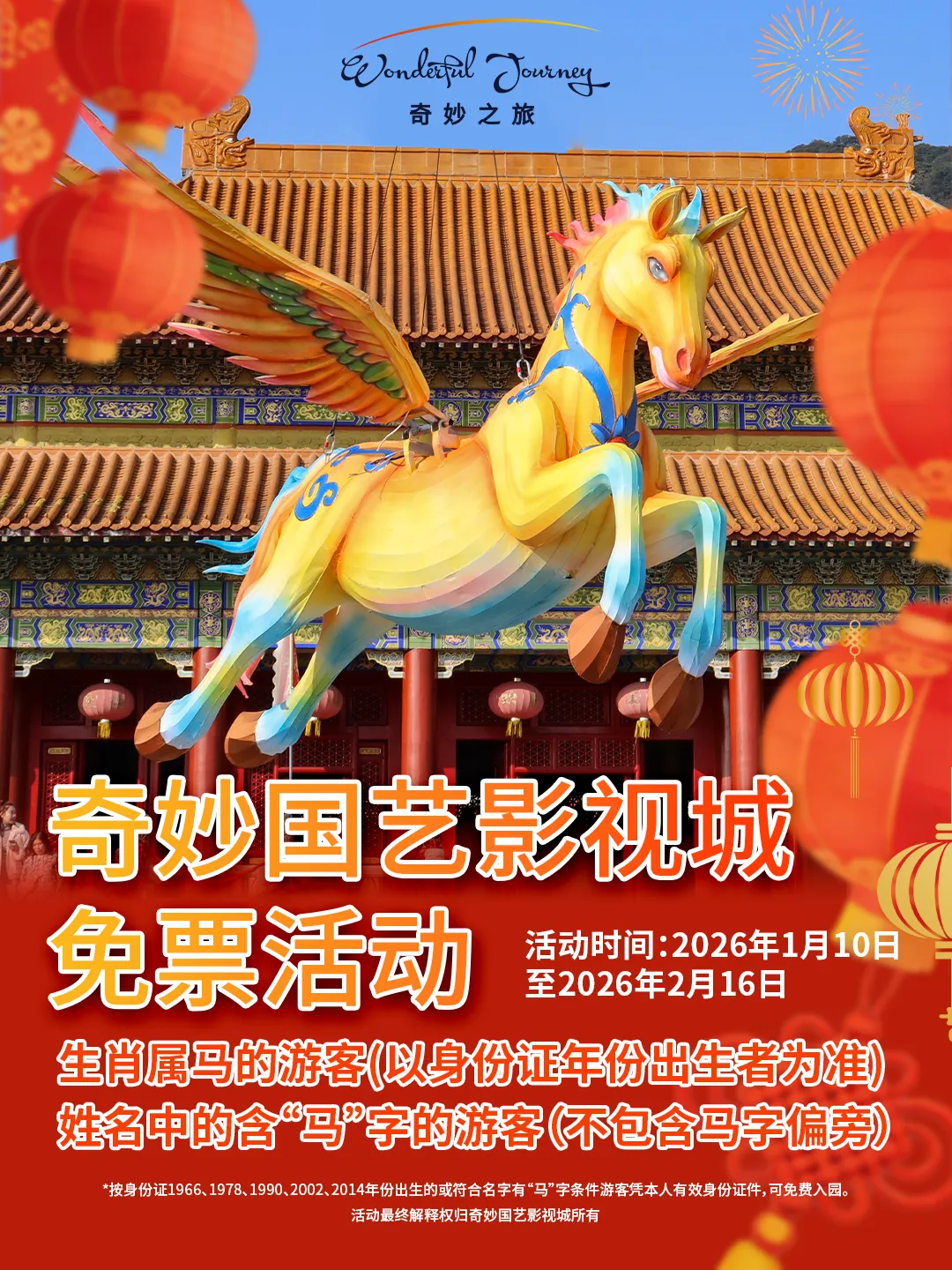 全国生肖属马游客(以有效证件公历出生年份为准,含2014年、2002年、1990年、1978年、1966年等马年)