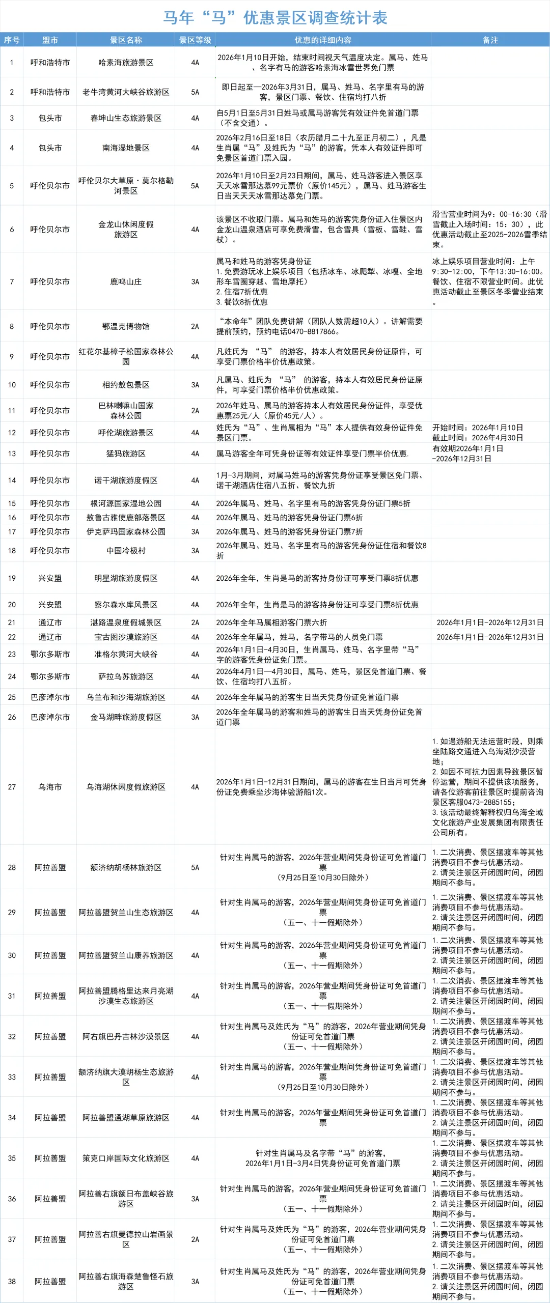 福利内容:景区对生肖属马或姓名带“马”字的游客实行免门票政策。(需持本人有效证件)
