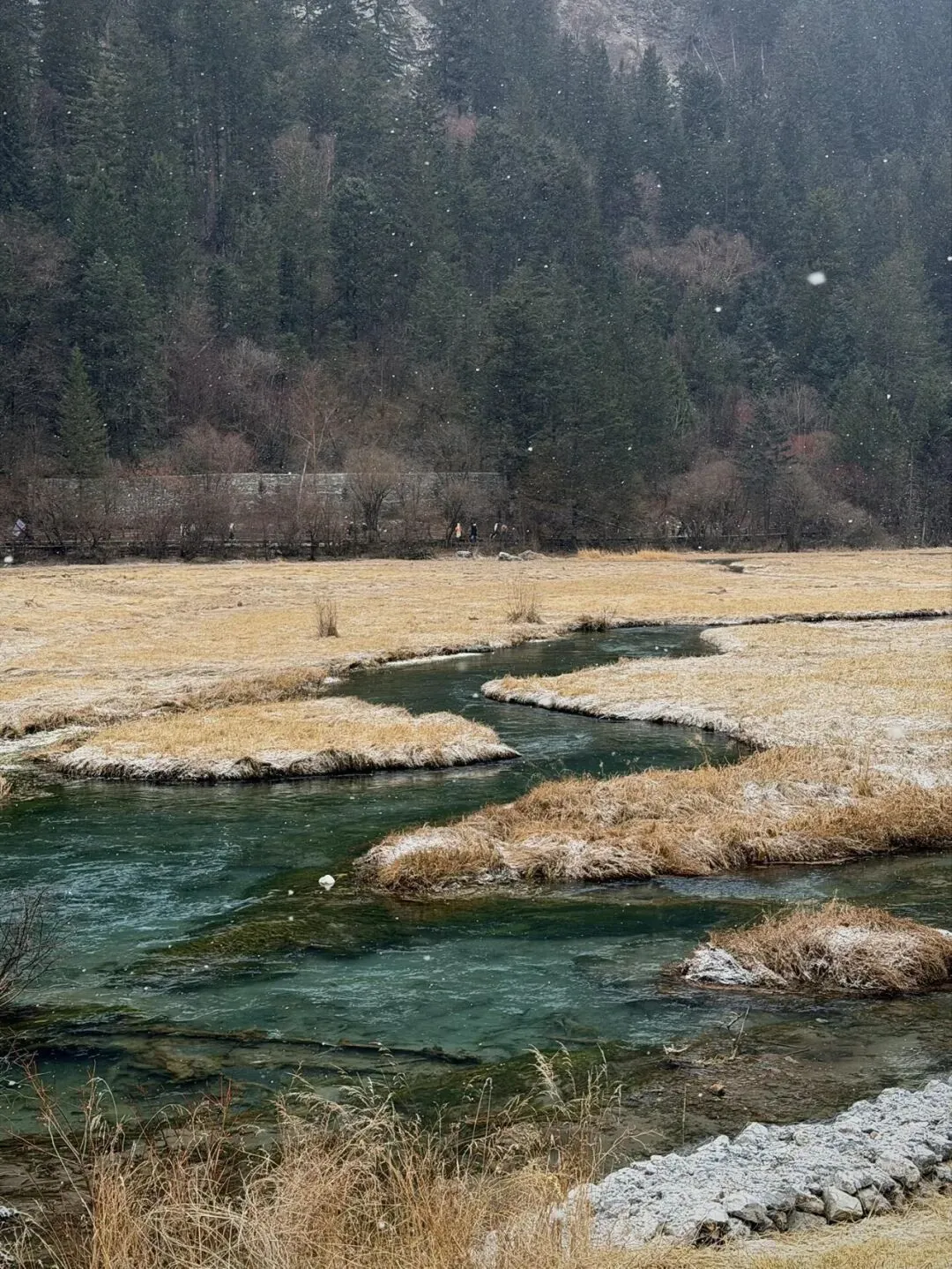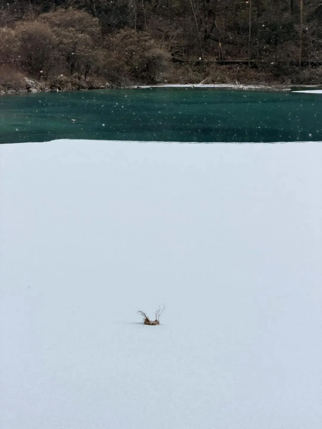 Photo by 小红薯 @约翰爱出门 下雪的九寨,更是浪漫得像从诗里走过。雪白,静谧,夹杂些许不甘,或许世界本该如此纯粹。