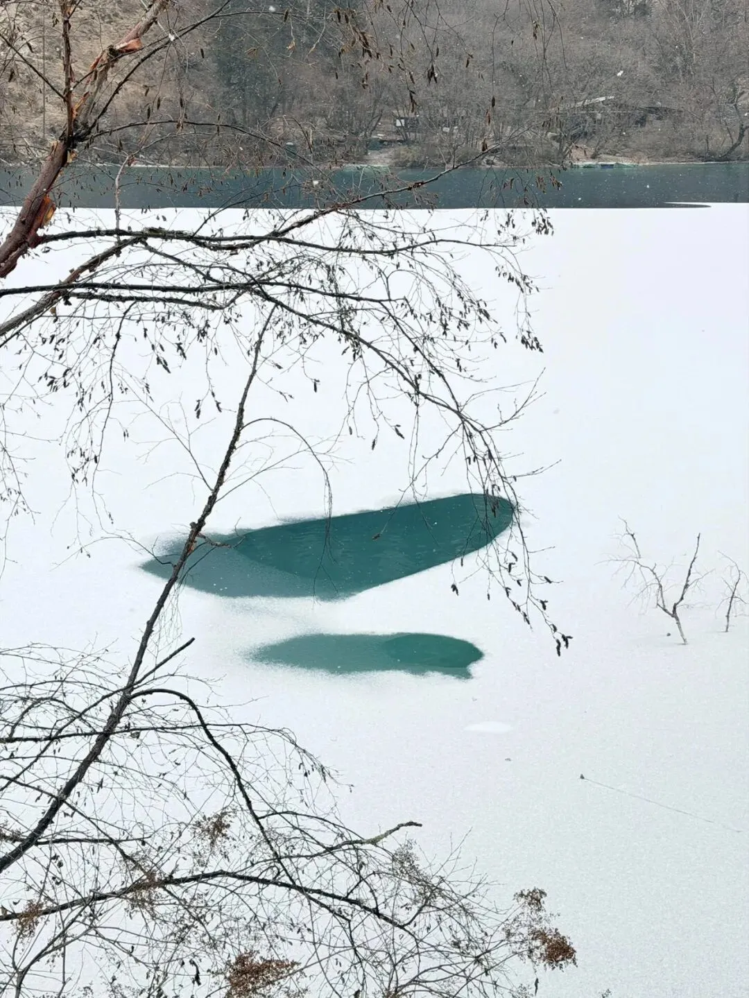 海拔最高的长海,彼时,3月已经冰封。而网友镜头下未冰封的海子,宛如家里的长姐,沉稳大气。
