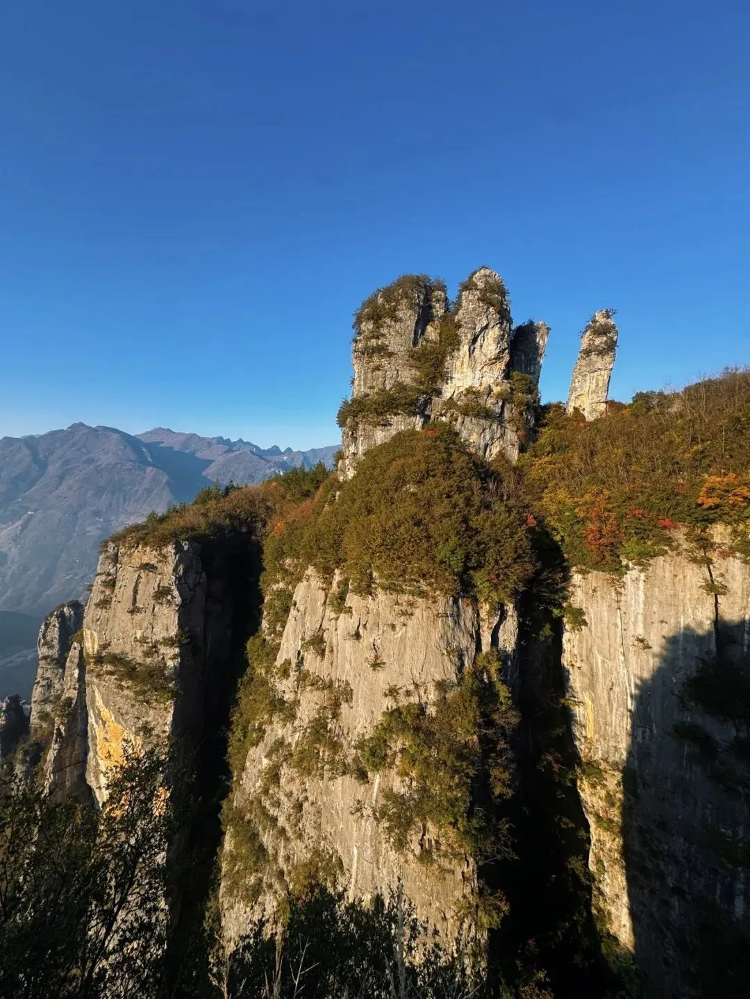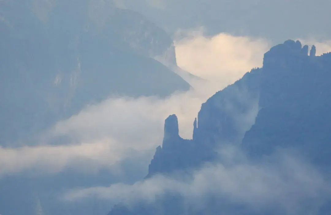 景区内三叠系石灰岩形成的“令牌”奇石拔地而起、壁立千仞,登顶之路需踏过崎岖石阶,沿途怪石嶙峋、荆棘丛生,部分路段需手足并用方能攀爬。立于峰顶俯瞰,群峰如涛、云雾缭绕,村落炊烟在峡谷间袅袅升起,险峻山势与静谧田园形成强烈反差。这里配套生态停车场、民宿及露营地,冬日有刨猪汤全宴、杀年猪民俗、腊味制作等特色体验,年味集市汇集渝陕鄂三地乡土好物。夏季则是避暑纳凉的绝佳选择,峡谷清风穿林而过,凉意沁人,既是避暑纳凉的绝佳选择,更能在险峻风光中感受大自然的雄奇壮阔。