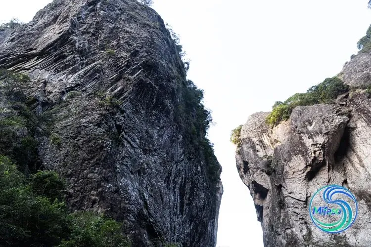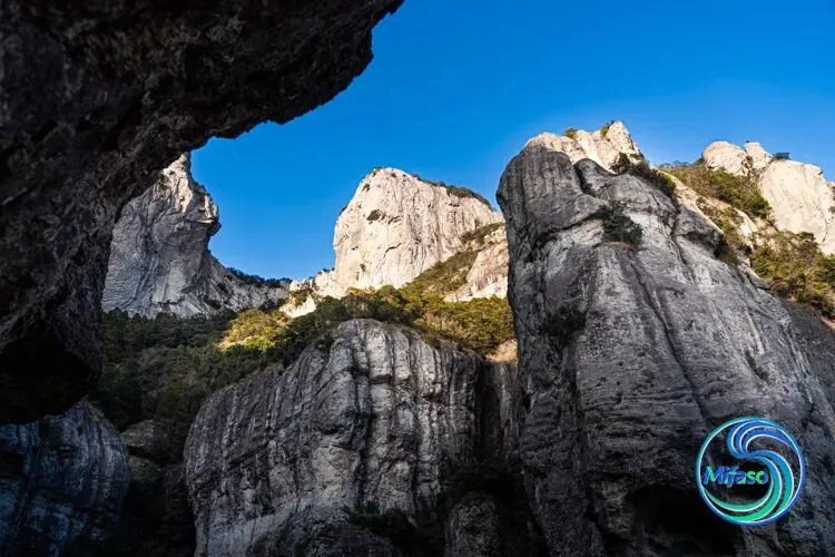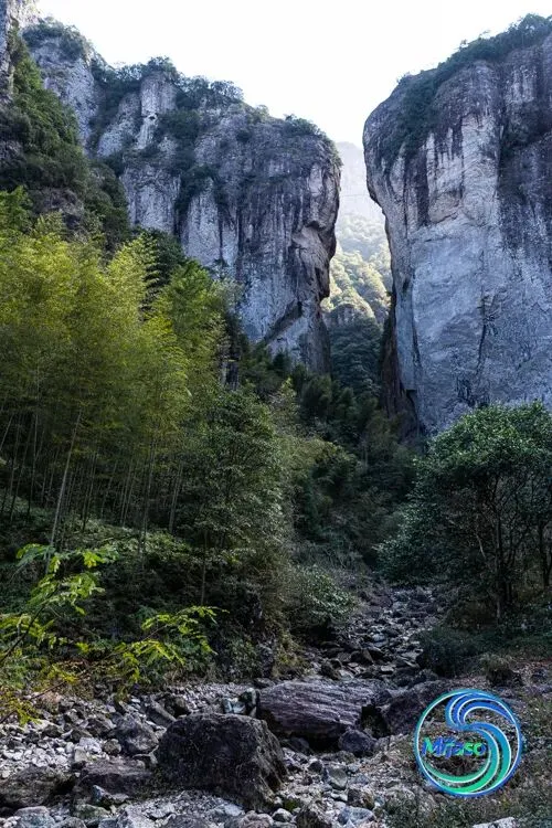 雁荡山显胜门、方洞景区 雁荡山是三山五岳中的三山之一,北雁荡位于浙江温州乐清雁荡镇是5A级风景名胜区。雁荡山显胜门景区位于乐清市龙西乡,显胜门是“九门三阙”之一门,因高200多米的两座峭壁对峙成门而得名,峭壁豁口仅数米,天下第一门之称。刘亦菲版的神雕侠侣电视剧的绝情谷就是在这里取景。明代旅行家、地理学家、探险家徐霞客也在显胜门留下足迹。 我们是25年元旦到这一游。听不见溪流潺潺声,溪洼里的水清澈见底,沙、石在阳光下懒洋洋地葛优般躺着。抬头望去小山顶一排岩石像恐龙的脊背。左右的显胜门像守着时间裂缝般守了亿年,石化后也就不知冷暖。我试着像穿过显胜门石缝的风一样穿过石缝,抬头望去我已在石缝中间。用21世纪的绿竹子、绿树粉饰着白垩纪的沧桑巨变。