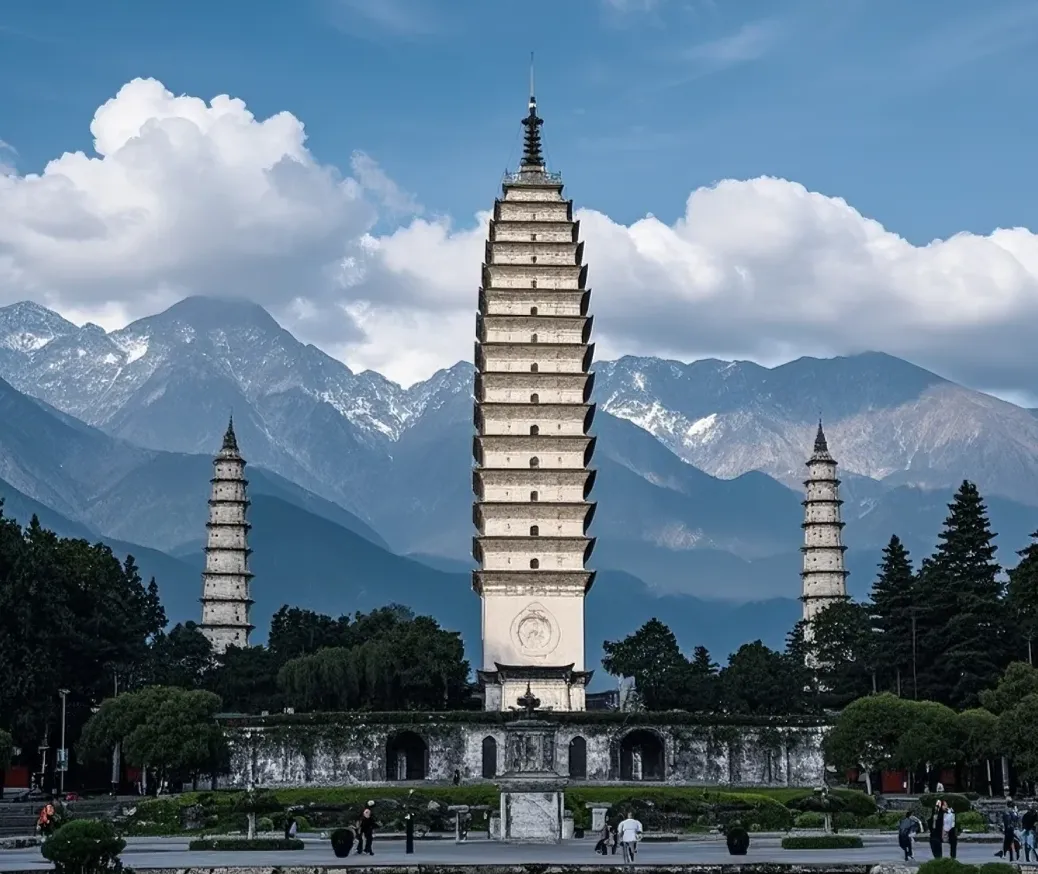 三塔是老地方,早期建在崇圣寺前,先有塔后有寺,前后几百年风吹不倒。