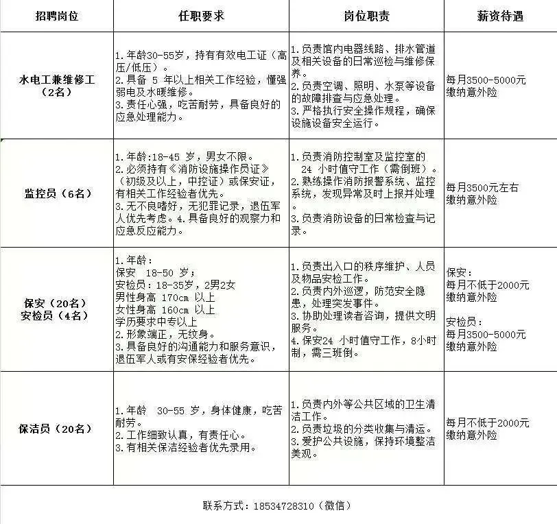 3.具备良好的沟通能力和服务意识,退伍军人或有安保经验者优先。