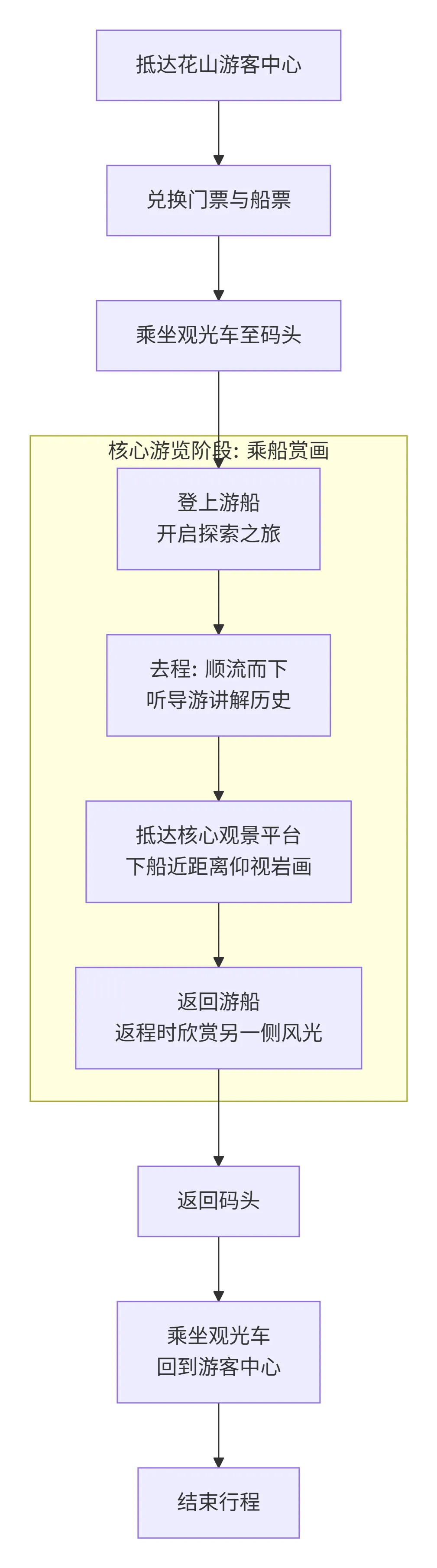 下图清晰地展示了花山岩画景区的完整游览流程: