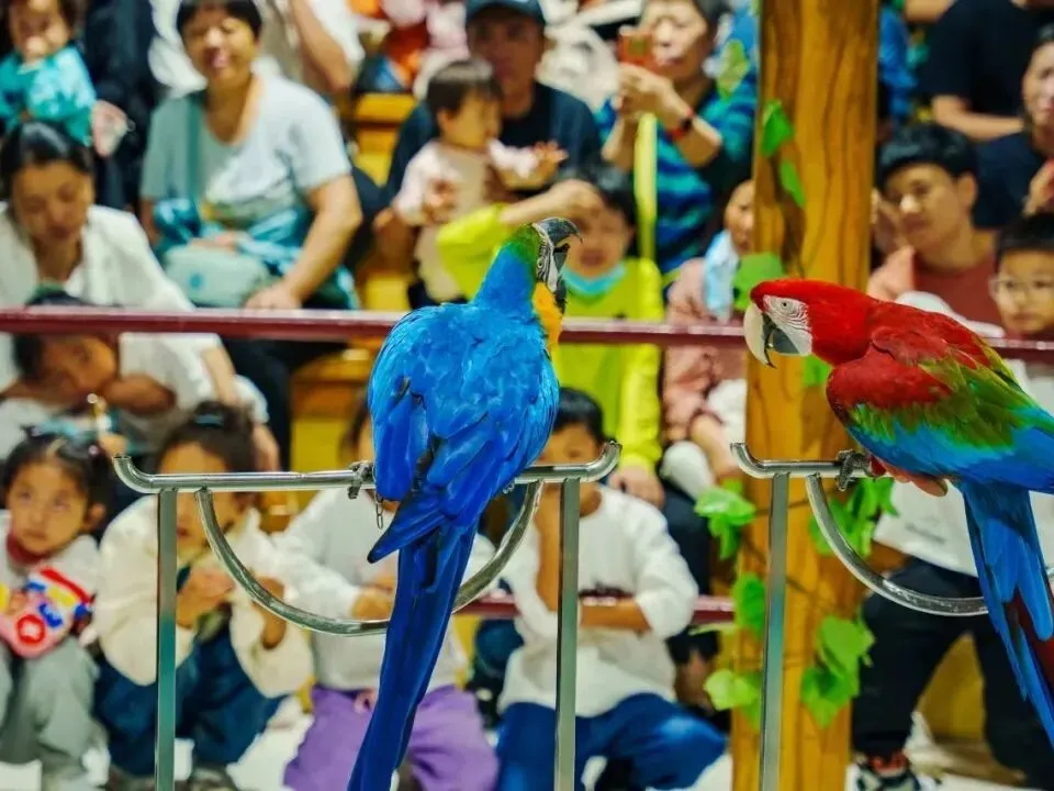 接着我们走进动物大剧院,随着动听的音乐如潺潺流水般响起,第一位鸟艺明星登场了。它们就是头戴绿帽的小鸭子,在水面上游得飞快,那速度就像一艘艘小快艇在水面上疾驰。它们的脚掌在水中快速划动,荡起一圈圈小小的涟漪。在陆地上行走时,那呆萌的小短腿一摇一摆的,就像一个个小不倒翁,那模样惹得大家哈哈大笑。随着饲养员的哨声,小鸭子们像听话的小士兵一样,告别了我们。接下来登场的鸟艺明星是黑天鹅和白天鹅。一阵优雅的音乐如同轻柔的春风在耳边响起,黑天鹅优雅地向我们游来,那修长的脖颈如同优雅的弧线,黑色的羽毛在阳光下闪烁着神秘的光泽。后面的鸟艺明星更是多才多艺。“精神小伙” 迈着它的大长腿向我们走来,它头上那一撮毛发就像一顶独特的帽子,在阳光下闪烁着别样的光彩,让它更加引人注目。我不禁感叹,大自然真是无奇不有啊!鸟界中最聪明的鹦鹉了。它们经过训练后,像一个个小小的表演艺术家,可以学人说话、跳舞、与人握手、算数。其中的鸟艺巨星 “如意” 就特别厉害,它就像一个语言小天才,不仅会说中文,那声音清脆悦耳,还会说英语,发音标准得像个小外教,甚至还会说河南话呢,那腔调充满了地域特色。随着音乐变得缓慢柔和,如同轻柔的催眠曲,节目也到此结束了。虽然节目结束了,但我们对大自然热爱的心却永远不会停止跳动,就像一颗燃烧的火种,永远在心中炽热地燃烧着。