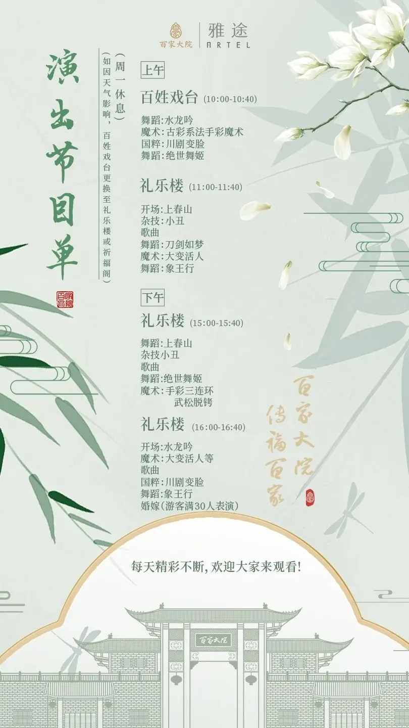 在百姓戏台和礼乐楼里,精彩的表演轮番上演。欢快柔美的国风歌舞、有趣的魔术表演……让你们近距离感受端午的热闹氛围。