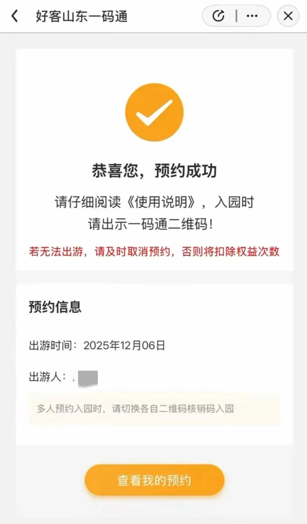依据页面提示,准确选择游玩时间及游玩人员信息,点击“确认预约”,即可顺利完成相关景区的预约操作。
